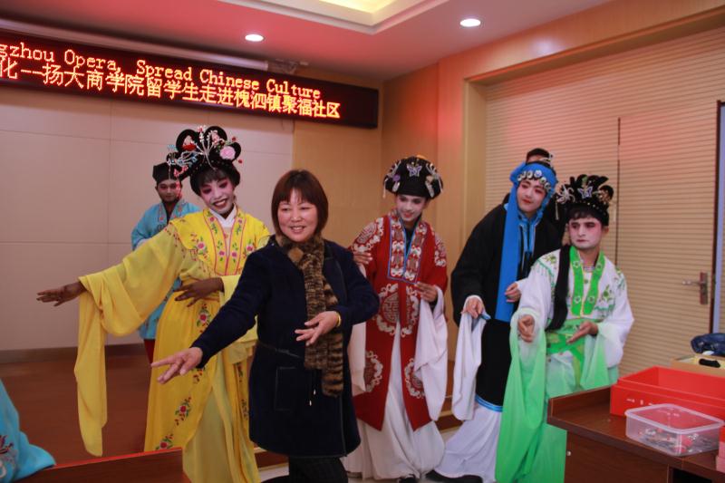 Under the guidance of the head of Yangzhou Opera troupe, these international students with costume and makeup started to learn the action and singing of the opera, and gradually felt the charming of traditional Chinese culture.