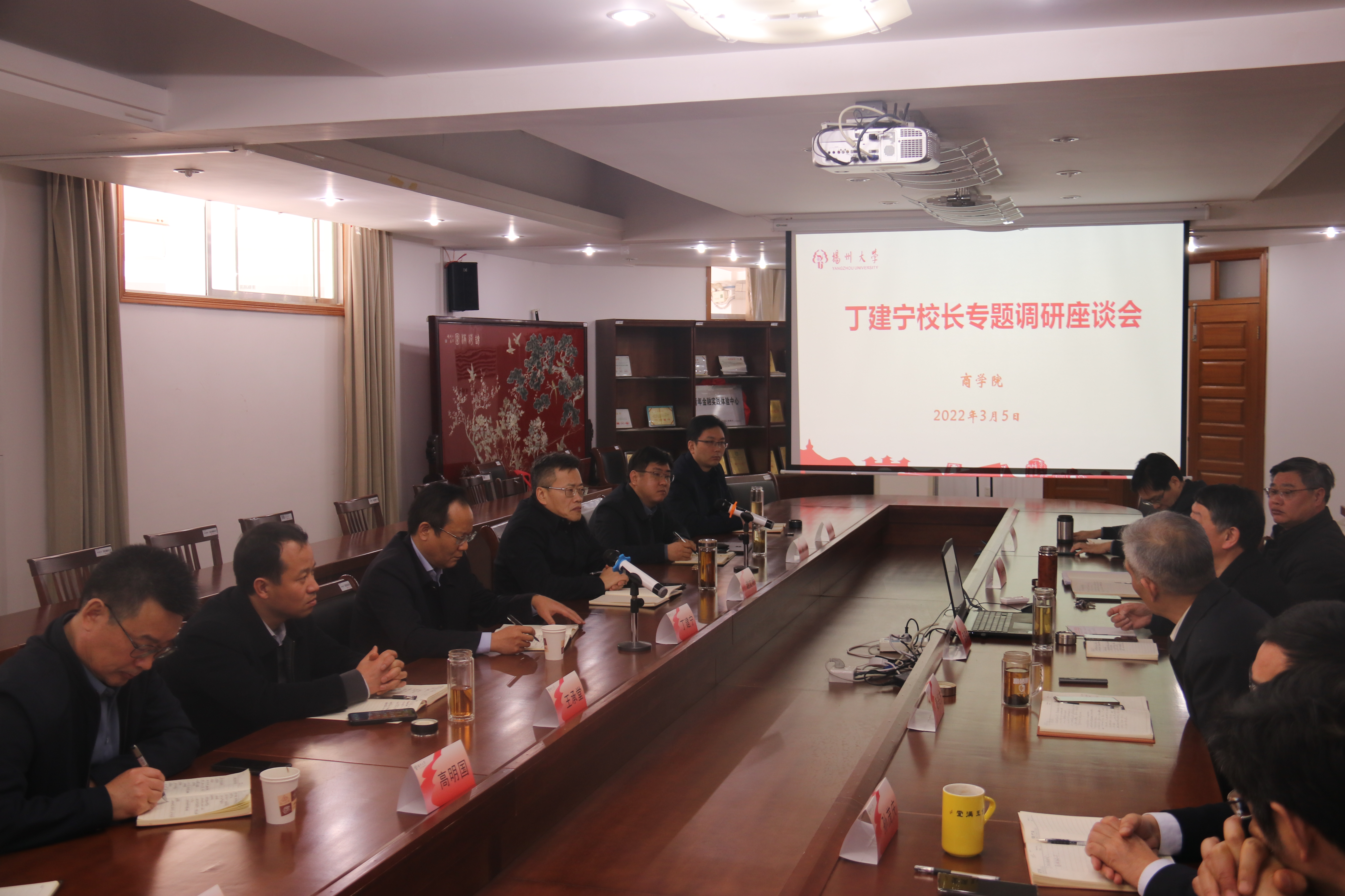 On March 5, President Ding Jianning and his delegation went deep into our school to investigate and guide the work. After listening to the work report of the school responsible comrades, President Ding fully affirmed the achievements of the development of the school in recent years, he stressed that the development of the business school should be closely focused on the needs of economic and social development, to further pay attention to the connotation construction, strengthen the construction of teachers, strengthen interdisciplinary integration, and promote the high-quality development of the college.
