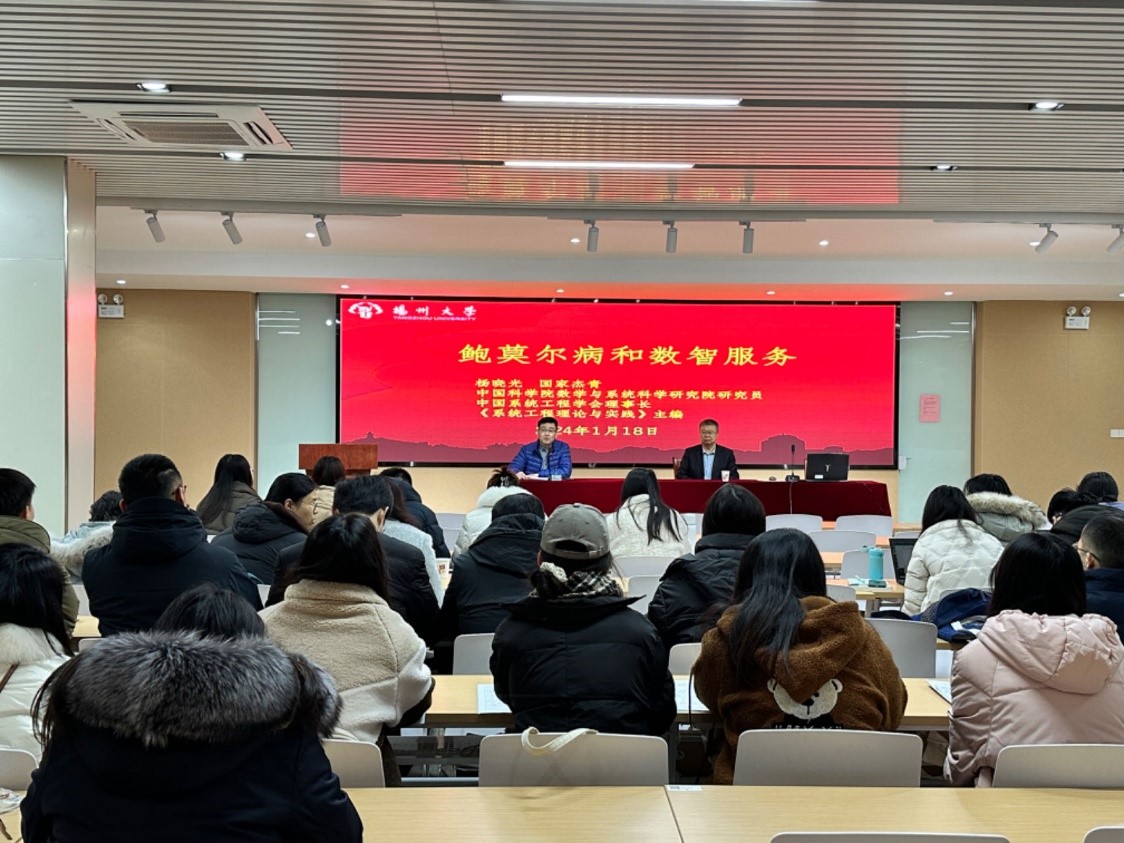 At the invitation of the Business School at Yangzhou University, the Chinese Academy of Sciences researcher Yang Xiaoguang delivered an academic lecture entitled "Baumol's Disease and Numerical Intelligence Services" at the Business School on January 18, 2024.