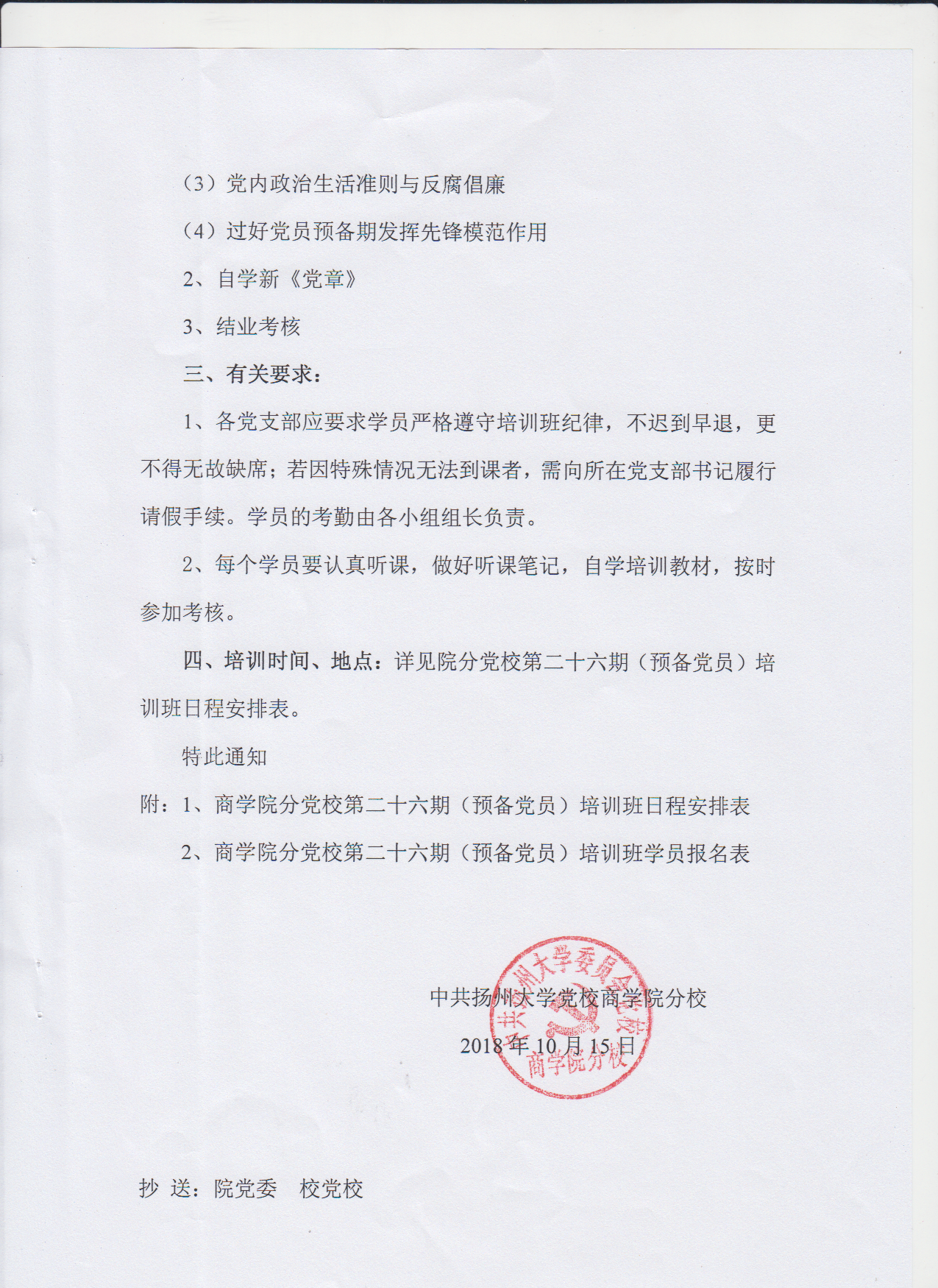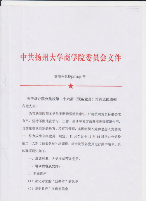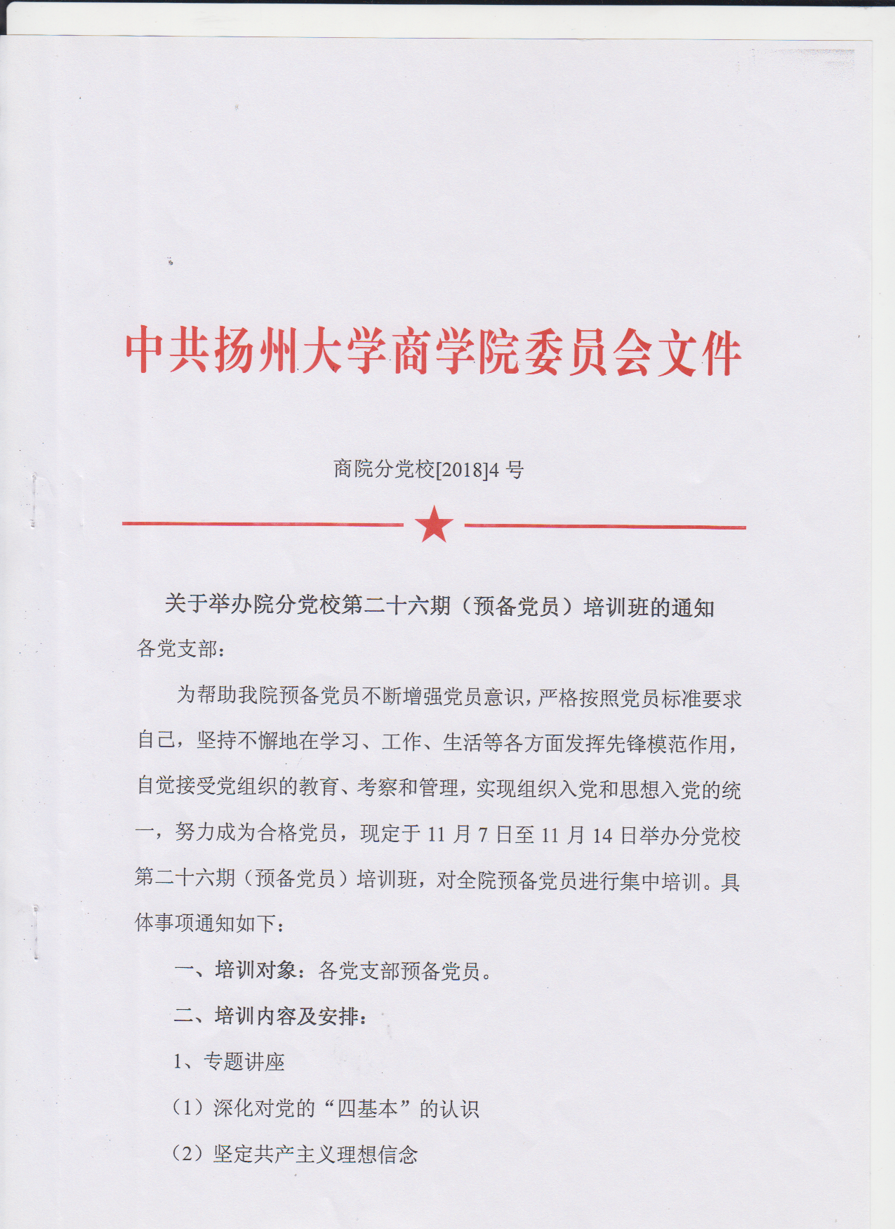 关于举办院分党校第二十六期(预备党员)培训班的通知