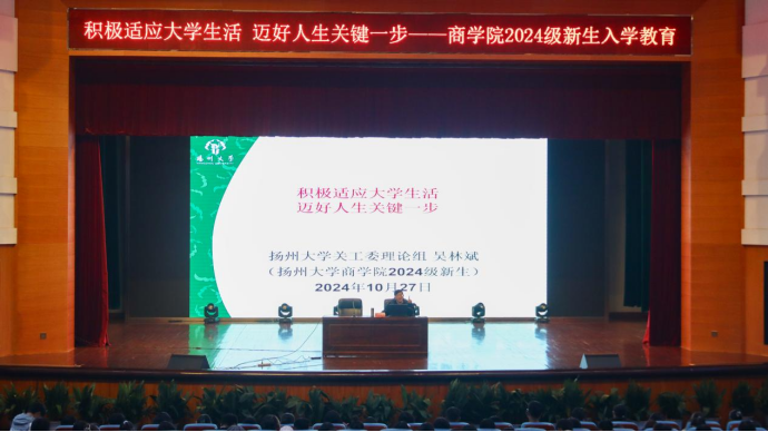 为了更好帮助新生适应大学生活、提升自身综合素质,助力解决同学们在大学生活中可能遇到的挑战与机遇,近日商学院在文体馆三楼报告厅开展了主题为“积极适应大学生活,迈好人生关键一步”2024级新生入学教育活动。本次活动由扬州大学关工委理论组、马克思主义学院的吴林斌主讲,全体2024级新生参与。