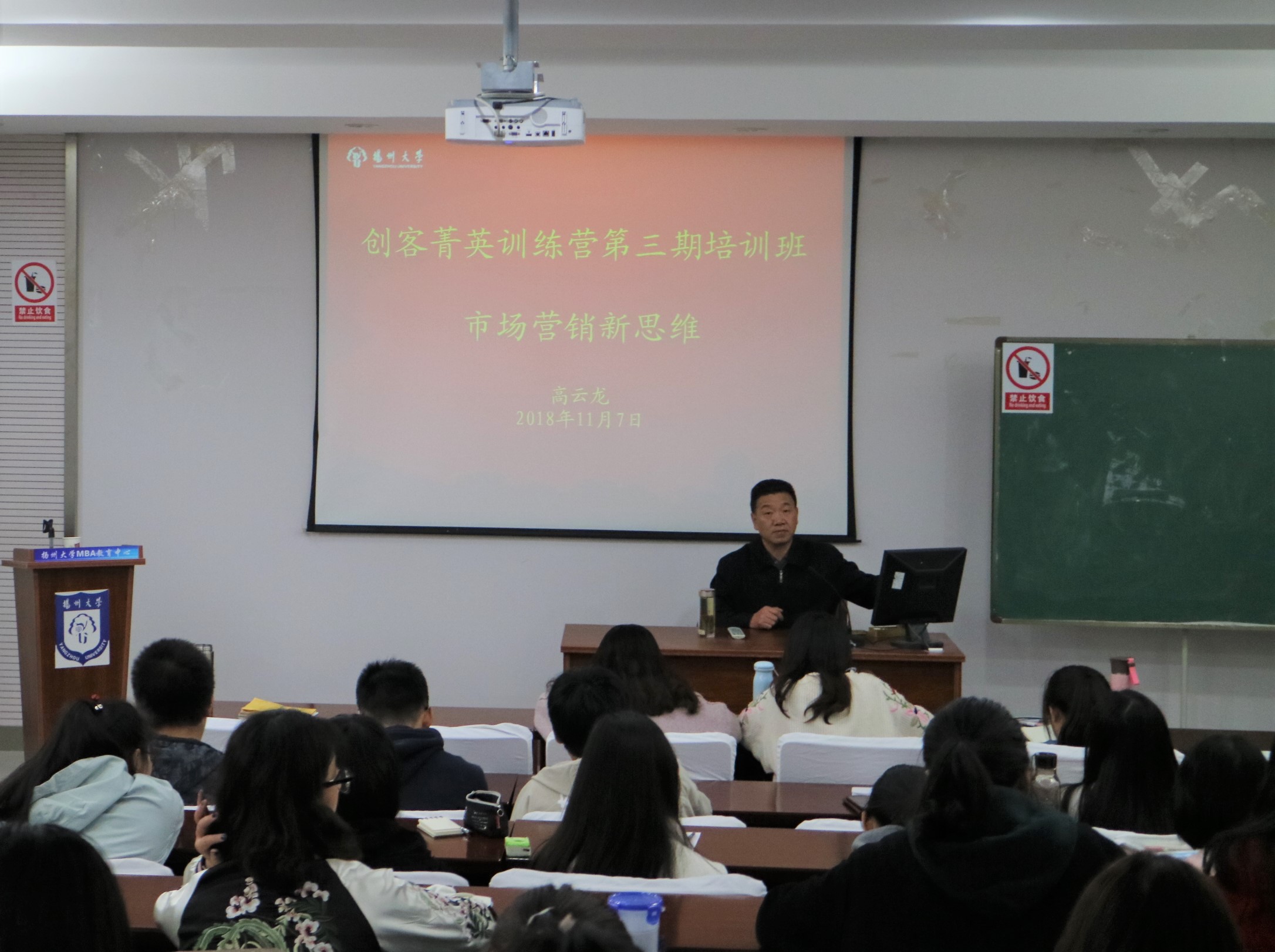 营销学专业的高云龙教授向同学们介绍了市场营销新思维。让大家了解了经济学家、营销学者对市场的理解。提出“市场=人口+购买力+购买欲望(动机)”并举例说明,十分通俗,引人入胜。并分别阐述了人口、购买力、购买欲望的具体内涵。高教授也提到了市场营销的五大特点并要求同学们树立以需求为中心的营销理念。高教授还详细画出了营销中的关系链,其深厚的学术功底让在座的各位赞叹不已,受益匪浅。