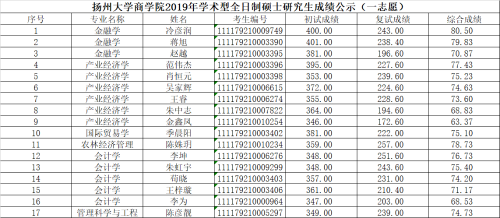 扬州大学商学院2019年学术型硕士研究生复试结果公布