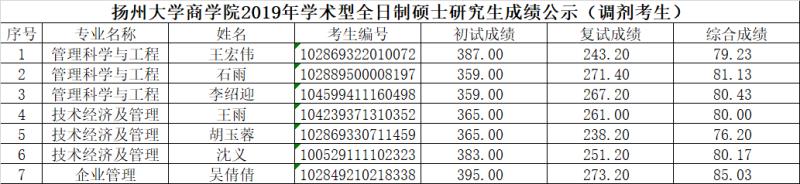 扬州大学商学院2019年学术型硕士研究生复试结果公布(调剂)