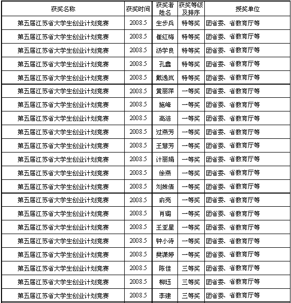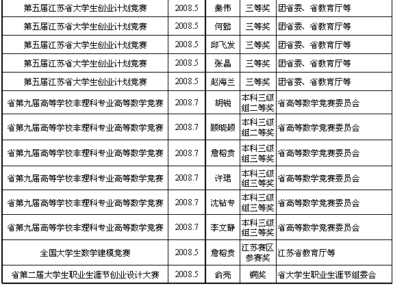 2008年管理学院参加省级以上相关竞赛获奖情况