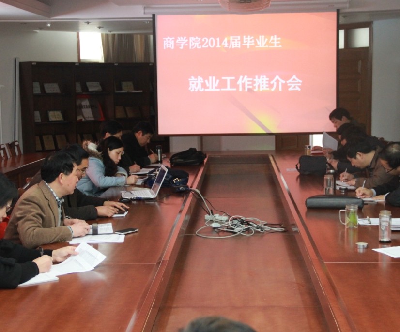 3月26日下午,商学院在行政楼322会议室举行2014届毕业生就业工作推进会,学工办全体老师及所有2014届毕业班班主任参加了会议。