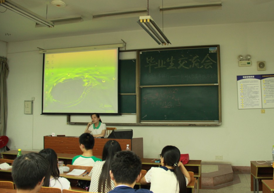 交流会首先由各位毕业生就自己的求职和面试经验等作介绍,对相关情况进行总结,对需要做的准备进行详细解读。随后,现场同学提出问题,毕业生为他们答疑解惑。通过介绍与交流,现场同学吸取到了经验,更加了解对未来的规划,明确了自己追求的目标,从而使自己的定位更趋合理。