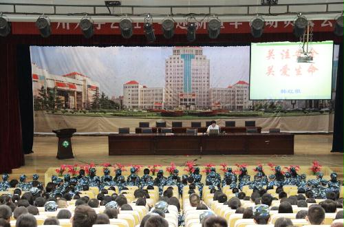 韩部长的讲座围绕“安全第一、预防为主、遵纪守法、健康成长”十六个字展开,以近些年发生在高校内的典型案例为切入点,剖析发生案件的原因及预防技能的掌握。重点针对学生宿舍笔记本电脑、手机、现金防盗,校园内交通安全、防骗、暴力案件预防、安全防火等方面进行了专题培训。