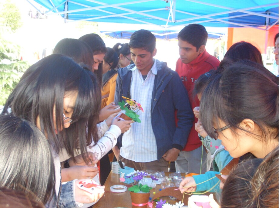 当天上午,在食堂前的广场上,同学们在现场亲手制作小布花、石膏像、笔筒,使得许多同学前来观看,并亲身参与到了制作的过程中。制成的手工艺品将会捐赠给结对帮扶的小学,从而使每一个小小的手工艺品都凝聚着一位同学的爱心。通过当天的活动,更多的同学体会到了帮助他人的快乐;并懂得感恩和奉献。整个活动一直持续到晚上。其间,由工作人员精心制作的感恩节视频一直在循环播放,涌动的真情感动了现场的每一个人。