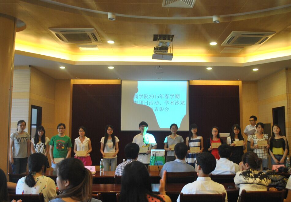 6月12日下午,我院在行政楼一楼报告厅举行2015年春学期团日活动暨学术沙龙总结表彰大会。获奖班级代表及2012-2014级各班班长、团支书参加了大会。