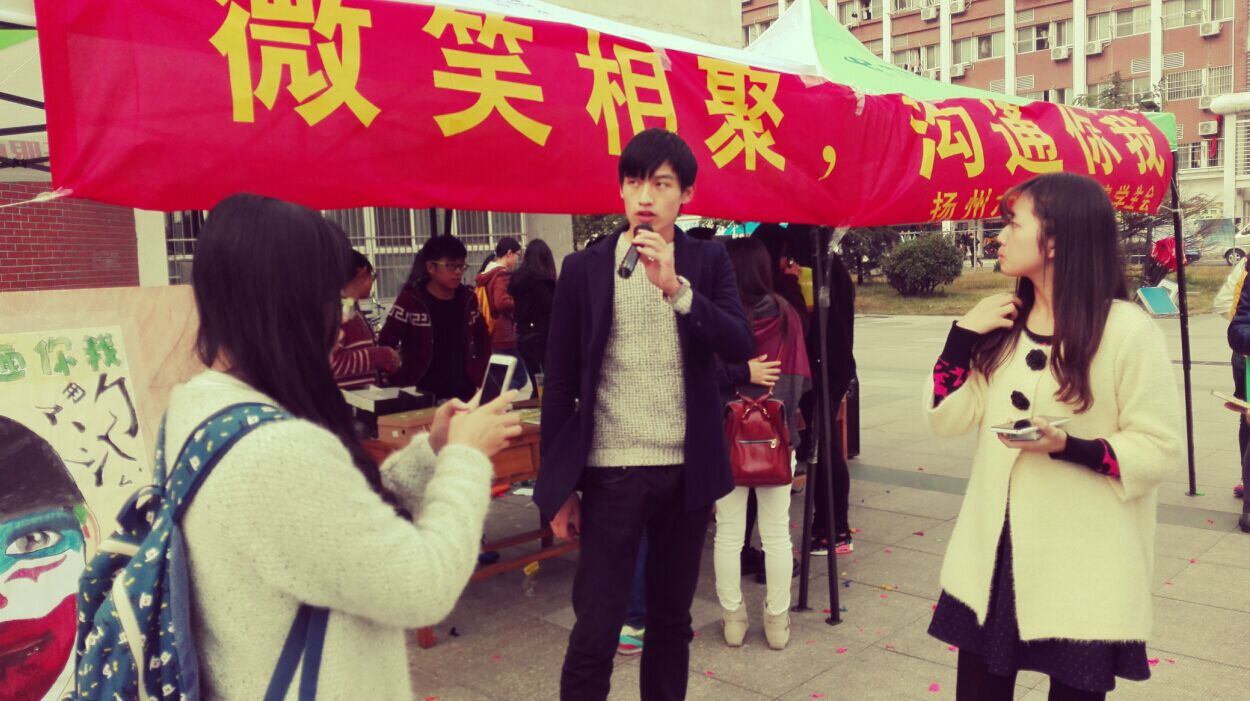 11月21日是“国际问候日”,在这个传递温暖的日子即将到来之时,我院于11月16日在扬子津西校区食堂门前举办“微笑相聚、沟通你我”的主题活动。
