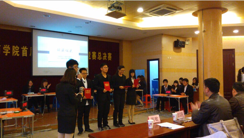 12月9日下午,我院首届校纪校规知识竞赛圆满落幕。共有七支队伍进入当天的决赛。选手们个个蓄势待发,观众们人人热情洋溢。在第一轮选择题环节,各队都发挥出了最强实力,几乎全部答对。第二轮抢答题,比赛现场高潮迭起,各队在比分上你追我赶,场面频频发生逆转。进入决定胜负的简答题部分后,现场紧张的气氛达到顶点。部分选手暴露出知识上的盲点,有的选手则对答如流。经过激烈的角逐,决出了最终的名次。