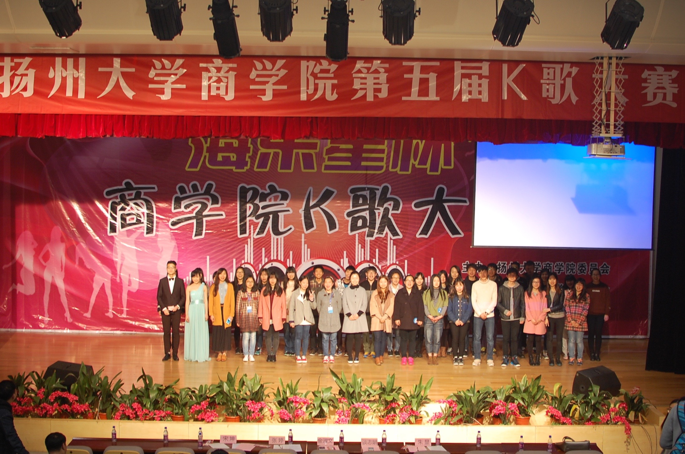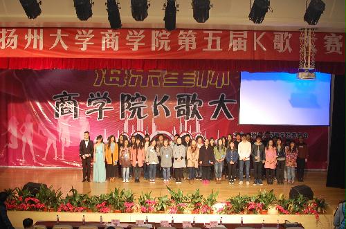 商学院第五届K歌大赛于3月18日晚在昭文馆报告厅展开了总决赛。本次大赛共由十位选手角逐冠亚季军。院团委谈志娟老师、金淑文老师,以及扬大好声音冠军宋坤同学出席担任评委。