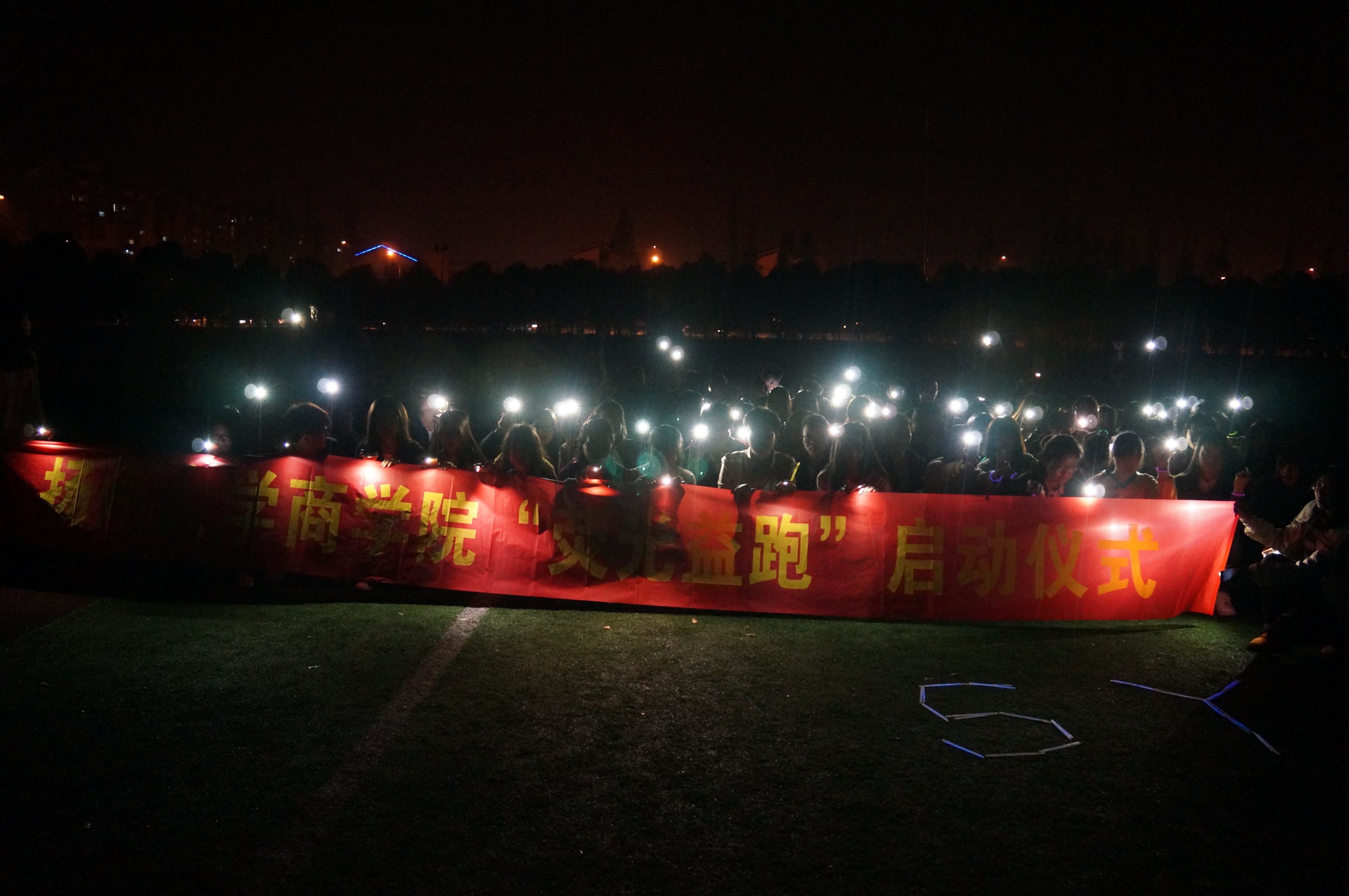 4月7日晚,商学院“荧光益跑”启动仪式在扬子津校区顺利举行。商学院团委书记廖善光老师,学工办孙维、金淑文、谈志娟老师,社联和学生会主席团全体成员以及其他170位同学自发参加了本次活动。