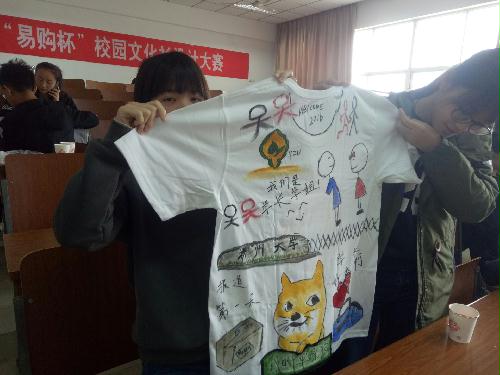 11月13日,由商学院管理者协会主办,苏宁云商协会协办的第一届文化衫设计大赛在扬子津西校区四号楼举行,此次比赛共有十二支队伍参加。