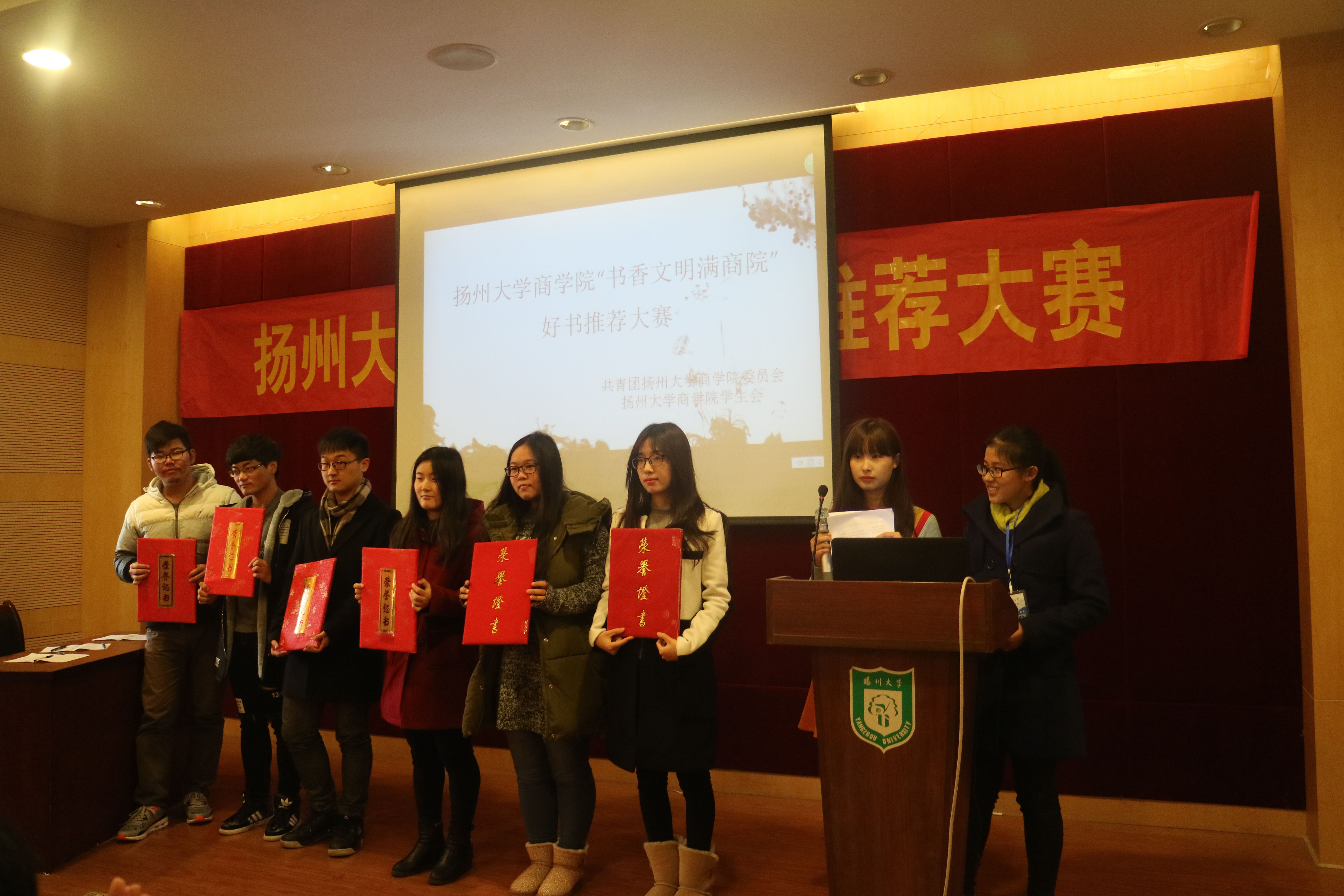 11月27日下午一点,由扬州大学商学院学生会组织的“书香文明满商院”好书推荐大赛决赛在行政楼报告厅隆重举行。