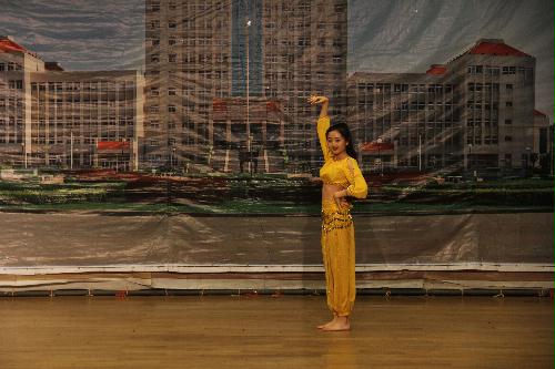 比赛分为三个环节,第一环节是改造军训服走秀,第二环节是个人的才艺展示,第三个环节是礼服走秀。在第一环节,选手们想尽各种方法对大家熟悉的军训服进行别出心裁的改装,其中七号选手周莹将朴素的军训服改成了时尚的长裙,不禁让人眼前一亮。在第二环节中,选手们各展才艺,表演精彩纷呈。其中四号选手顾嘉俊的歌曲表演点燃了全场,而五号选手席雨薇的舞蹈,融合了新疆舞和印度舞的特色,展现了不一样的风采。七号选手周莹徒手劈木板、一字马的表演,引来台下阵阵欢呼。在最终环节,各个选手都拿出了看家本领,各种艳丽的服装如梦如幻,让人感受了一把时尚T台秀的风采。