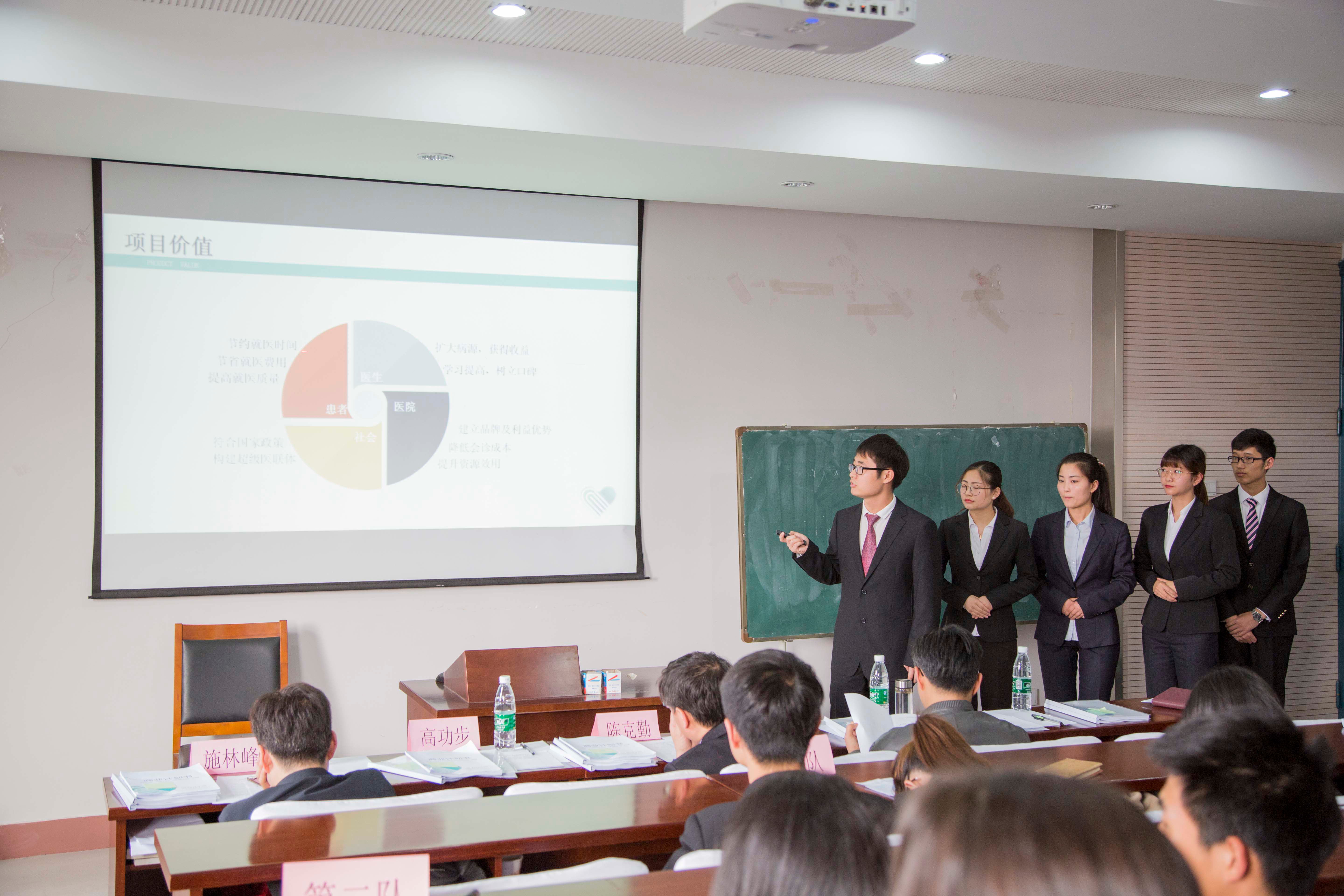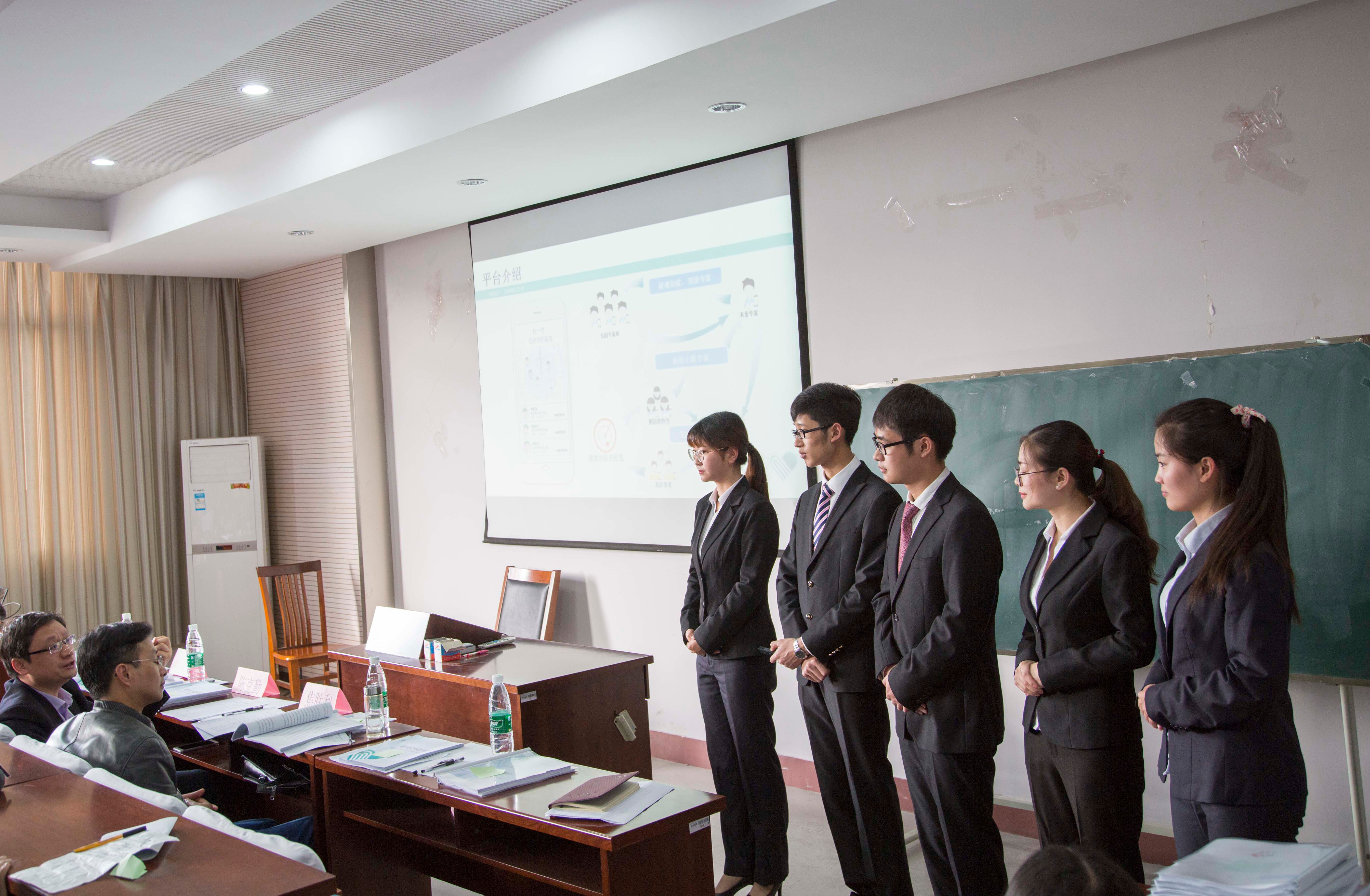 本次挑战赛分为两个环节——PPT展示和答辩。首先是PPT展示环节,每支队伍通过PPT展示介绍自己的团队以及团队的项目创新点和实施情况;接着是答辩环节,评委根据团队的项目介绍以及文本情况,与团队成员进行问答交流,深入了解团队的项目实施情况,并给出意见和建议。十四支团队积极联系实际,头脑风暴,思考创新点,使电子平台富有特色,充分体现了挑战赛的“创新、创意及创业”的核心主题。