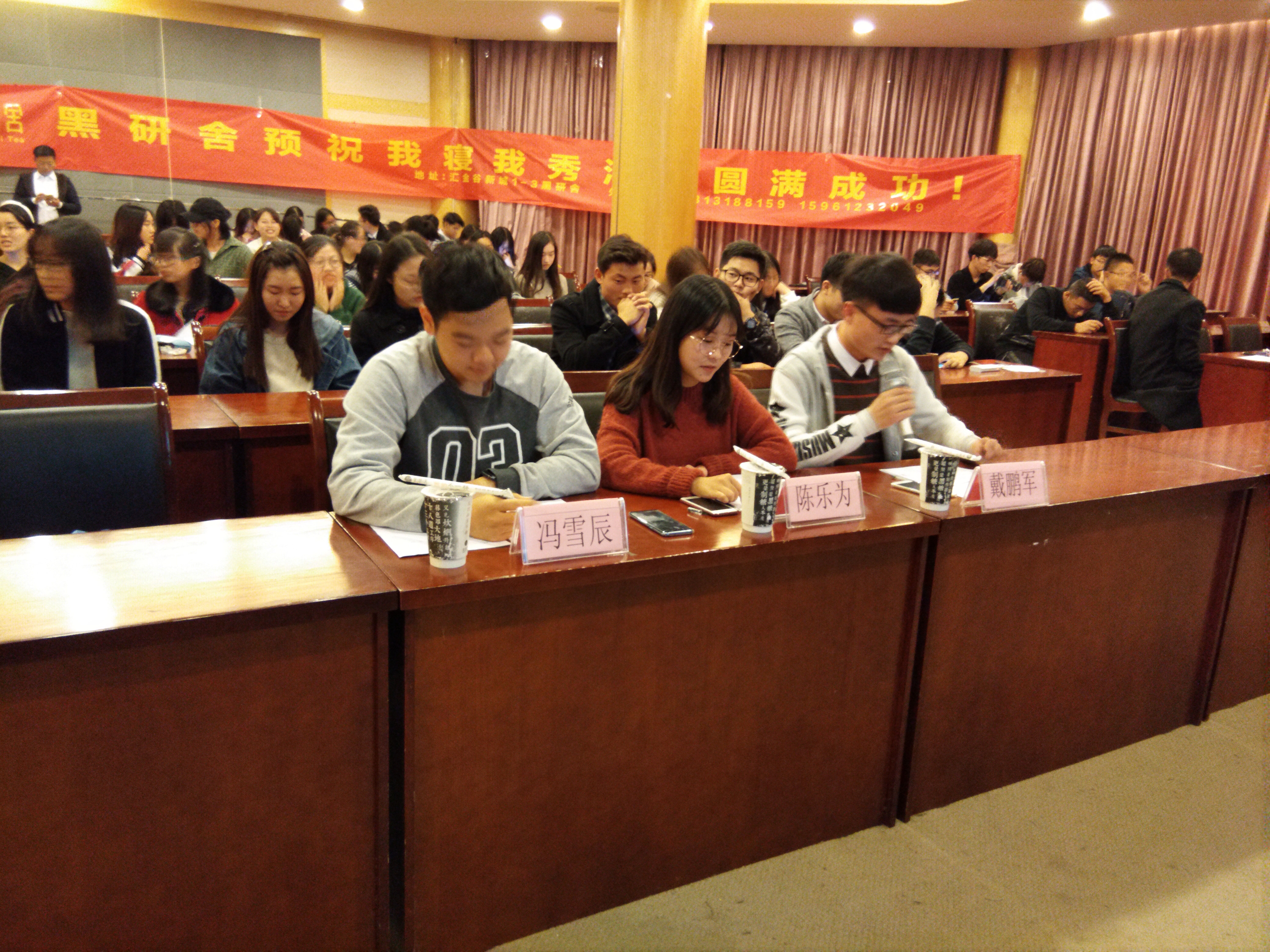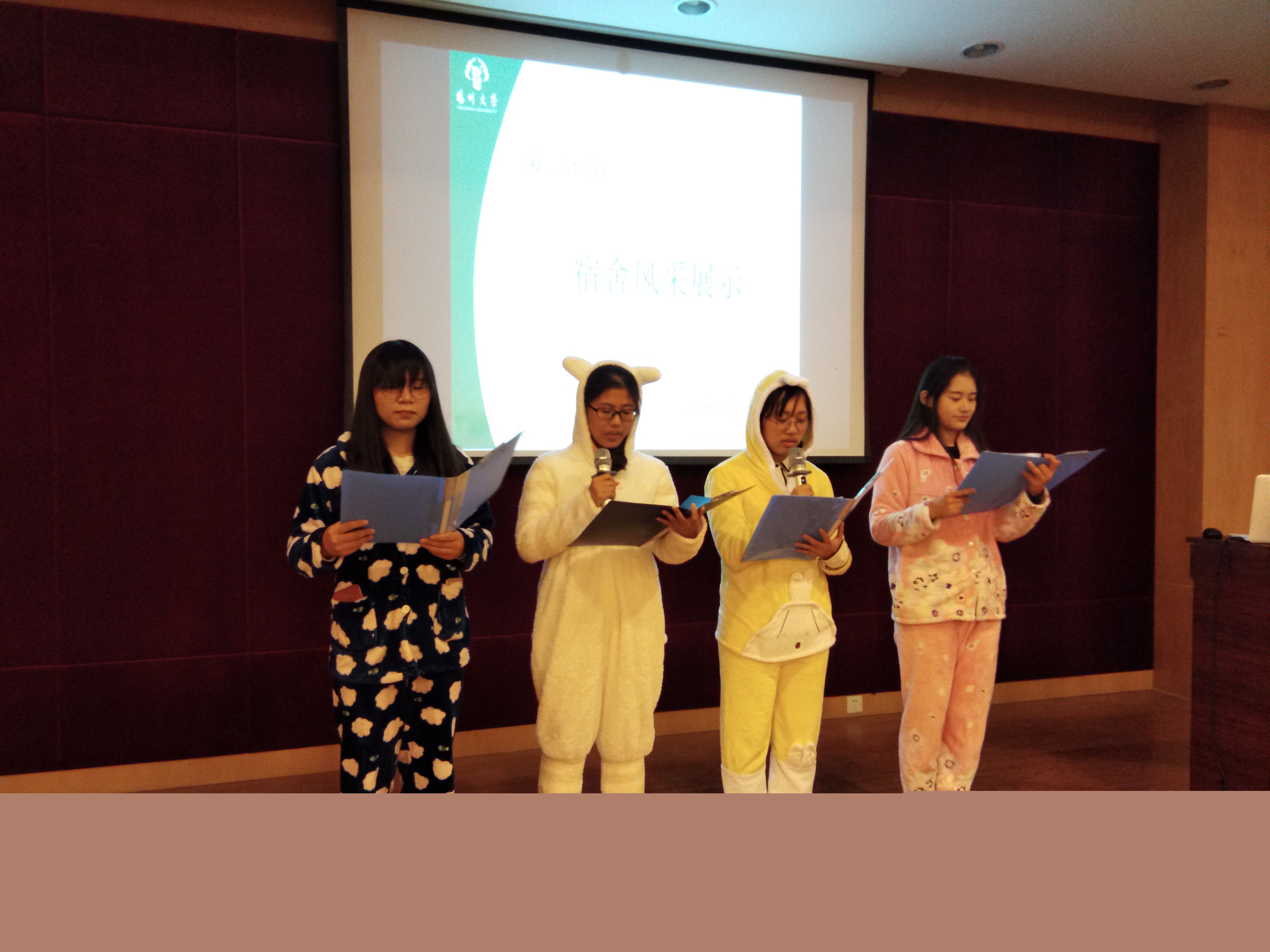 11月8日晚,扬州大学商学院第三届“我寝我秀――照我想照,说我想说”宿舍故事主题活动决赛于行政楼一楼报告厅顺利举行。商学院学生会副主席戴鹏军、陈乐为和冯雪辰担任本次决赛的评委。