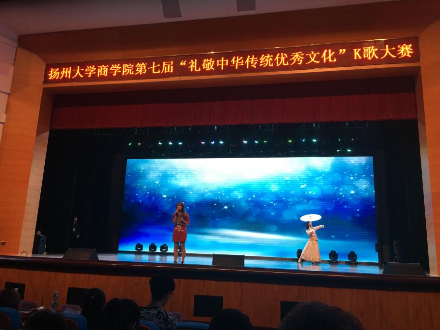 春风吹遍十里扬州路,歌魂觉醒在扬州大学商学院“K歌大赛”的现场。四月十八日,商学院第七届“礼敬中华传统文化”K歌大赛决赛在文体馆举行,十二位选手经过初赛厮杀进入决赛,为我们呈现了一场欢歌盛宴。