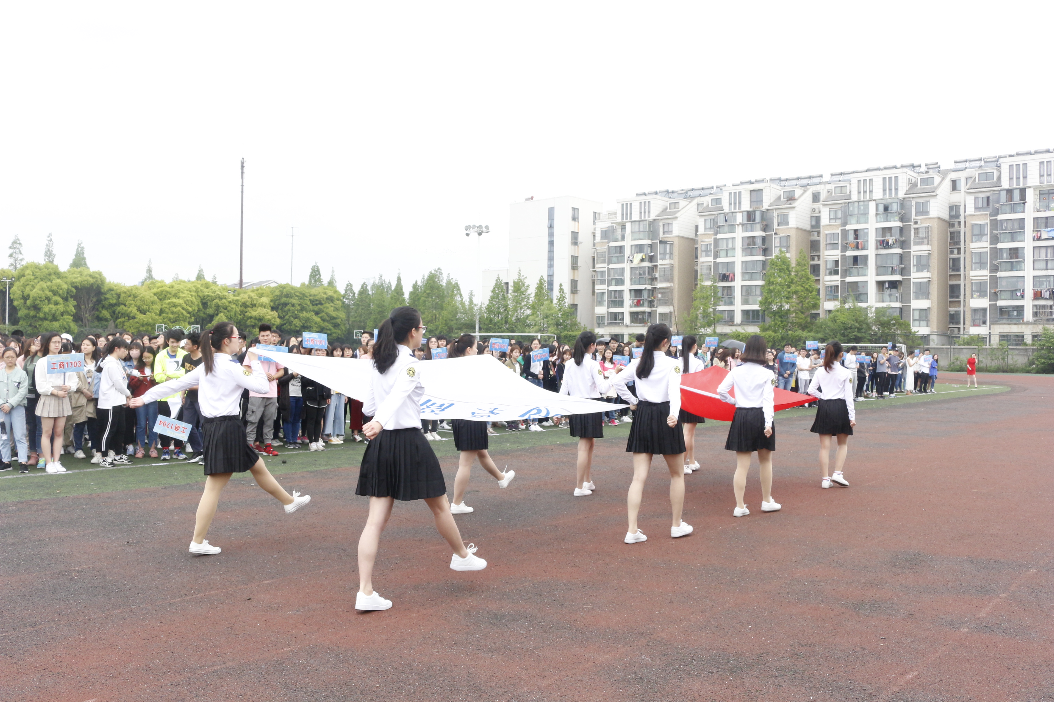 开幕式上,护旗队、啦啦操以及各专业方阵相继入场展示,同学们朝气蓬勃,热情洋溢。各个赛场上,跳高、跳远、跑步等运动员们挥洒汗水,奋勇争先,展示了商院学生的良好精神风貌。
