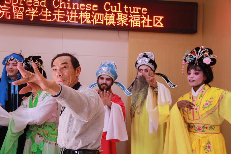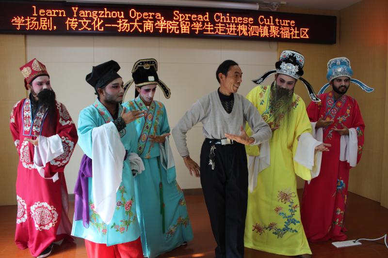 扬剧是江南地区传统戏曲剧种之一,发源于江苏省扬州市,是中国第一批国家级非物质文化遗产。11月25日,扬州大学来自孟加拉、也门等“一带一路”沿线国家的留学生来到扬州市邗江区槐泗镇聚福社区,在戏曲票友的帮助下体验戏剧妆容,学习扬剧唱腔和表演技艺,感受中国戏曲文化的魅力。