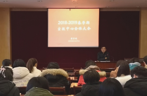 2月27日下午,商学院2018-2019春学期宣报中心全体大会在商学院行政报告厅召开,商学院党委副书记孙茂庆,学工办辅导员张一卉,宣报中心主任及全体部长、干事参加大会。