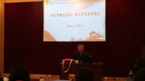 刘方云老师以“军营中锻造成长,炮火中英勇救战友”为主题,将自己的人生分成几个故事,用幽默诙谐的语言向大家讲述,教育大家要胸怀大志、拼搏创新、永怀感恩之心,做一个敢于担当的青年共产主义者,刘老师还要求同学们记住四点:学人长处、记人好处、帮人难处、容人短处。