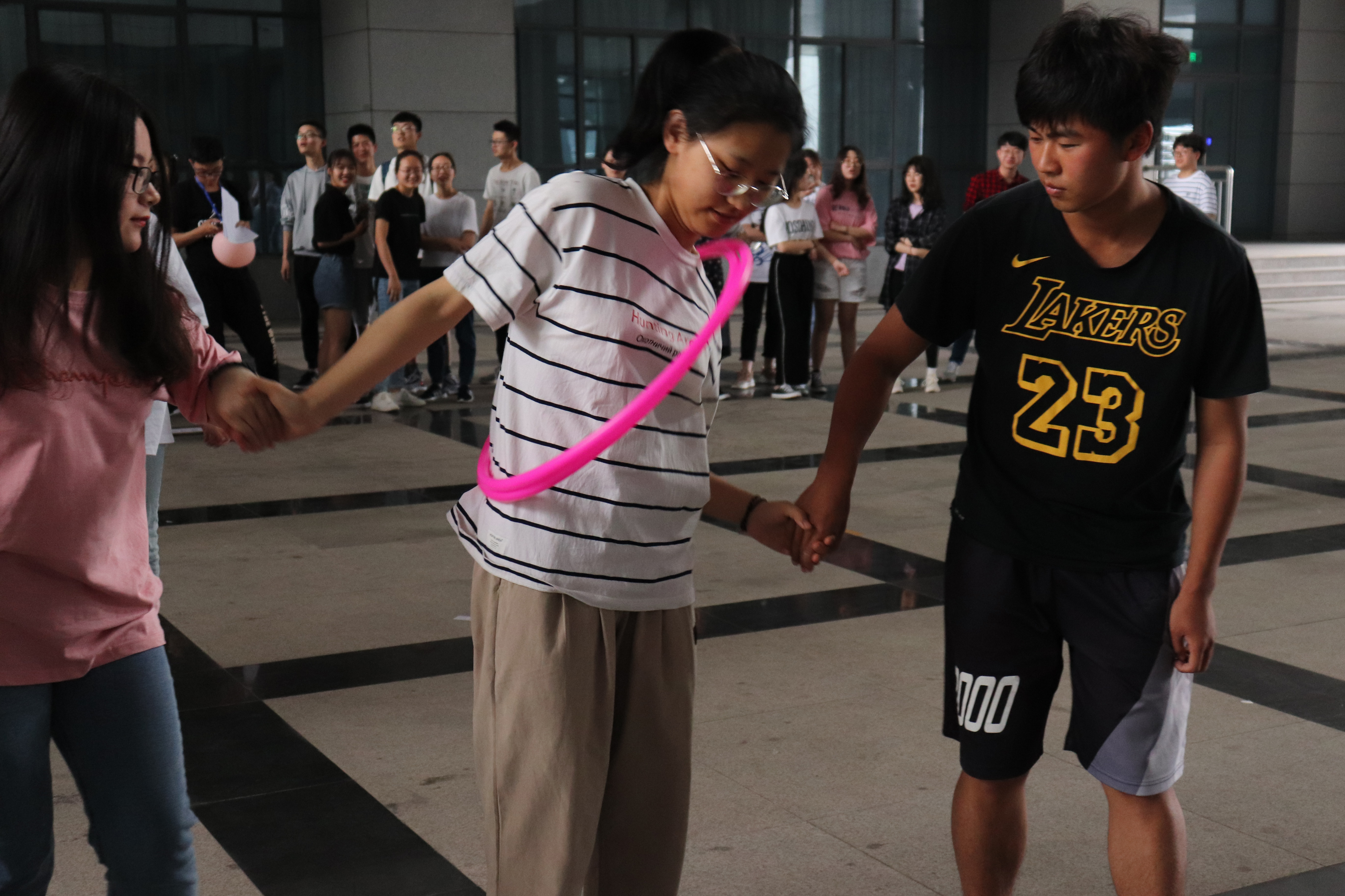 活动共分3个游戏环节,第一个游戏环节是“气球大作战”,这个游戏十分考验参与者的平衡能力和力度的掌控能力;第二个游戏环节是“穿越呼啦圈”,考验的是参与者的协作能力与团队默契;第三个游戏环节为“撕名牌”,同学们前往文津楼地下车库 “撕名牌”,这个游戏在紧张刺激之外还对同学们的合作能力和体力提出了要求。3个游戏环节结束后,本次团队熔炼活动也圆满结束。