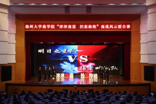 11月18日,我院在文体馆成功举办“津津商道 拍案称绝”商战风云擂台赛。校党委学生工作部(处)部(处)长林刚、校党委研究生工作部(处)部(处)长吴刚、校党委宣传部副部长戴世勇、校人事处副处长汤学俊、校人文社科处副处长连远强,院党委书记孟益宏、院党委副书记孙茂庆出席本次活动。