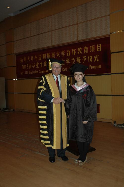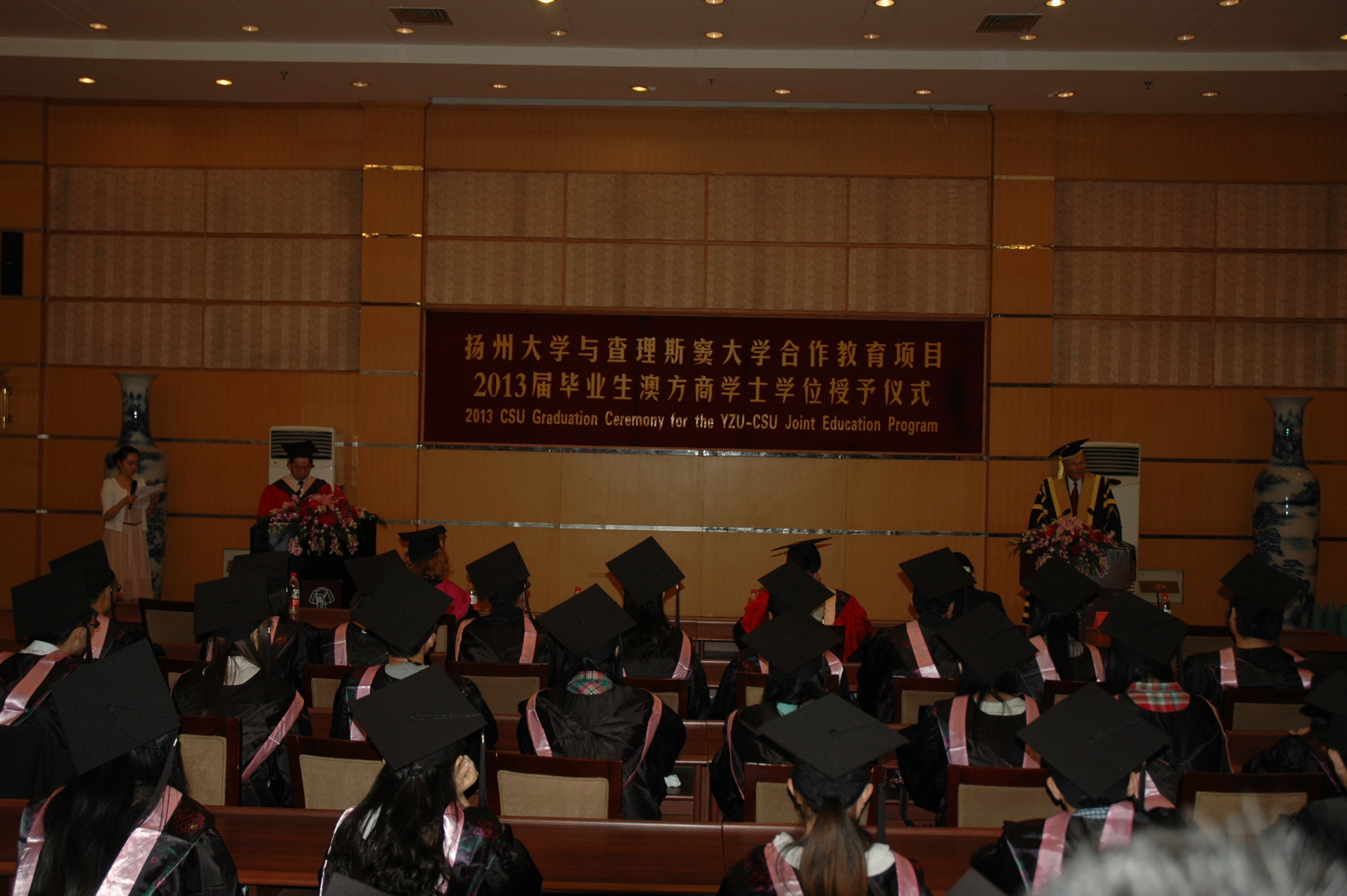 2013年5月31日上午,我院2013届国际商务专业澳方学位授予仪式隆重举行。澳大利亚查理斯窦大学校长Lawrence Willett先生、查理斯窦大学副校长Heather Cavanagh教授、商学院和海外教育学院领导,中澳合作办学项目管理人员出席了学位授予仪式。部分学生家长也专程来到典礼现场,见证学位授予的激动时刻。
