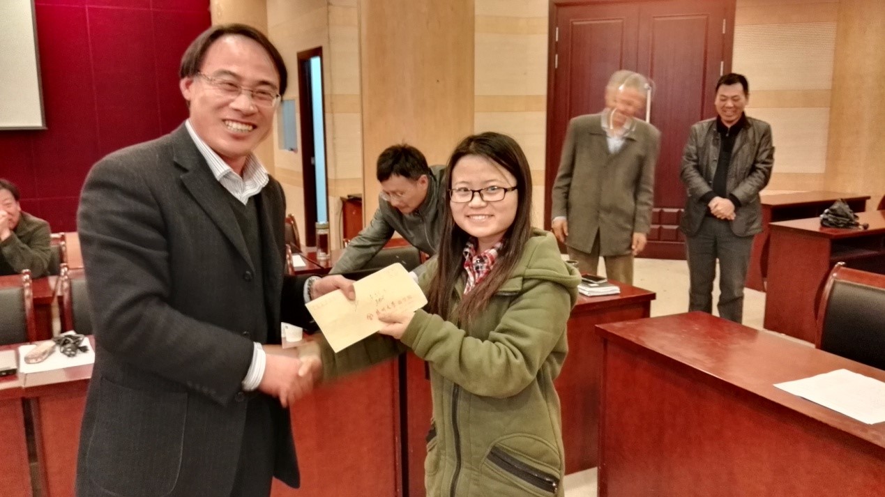 在交流会开始之初,根据《市场营销专业研究性教学成果奖励试行办法》,营销电商教研室还首次对营销1401班同学的研究性学习成果进行了表彰。校教务处副处长吴锋教授、商学院副院长李庆钧教授为在过去一学年中荣获首届江苏省互联网+大学生创新创业大赛一等奖等奖项的张俊、陈云婷、周璠、张文文等同学进行了表彰并颁发了奖金。