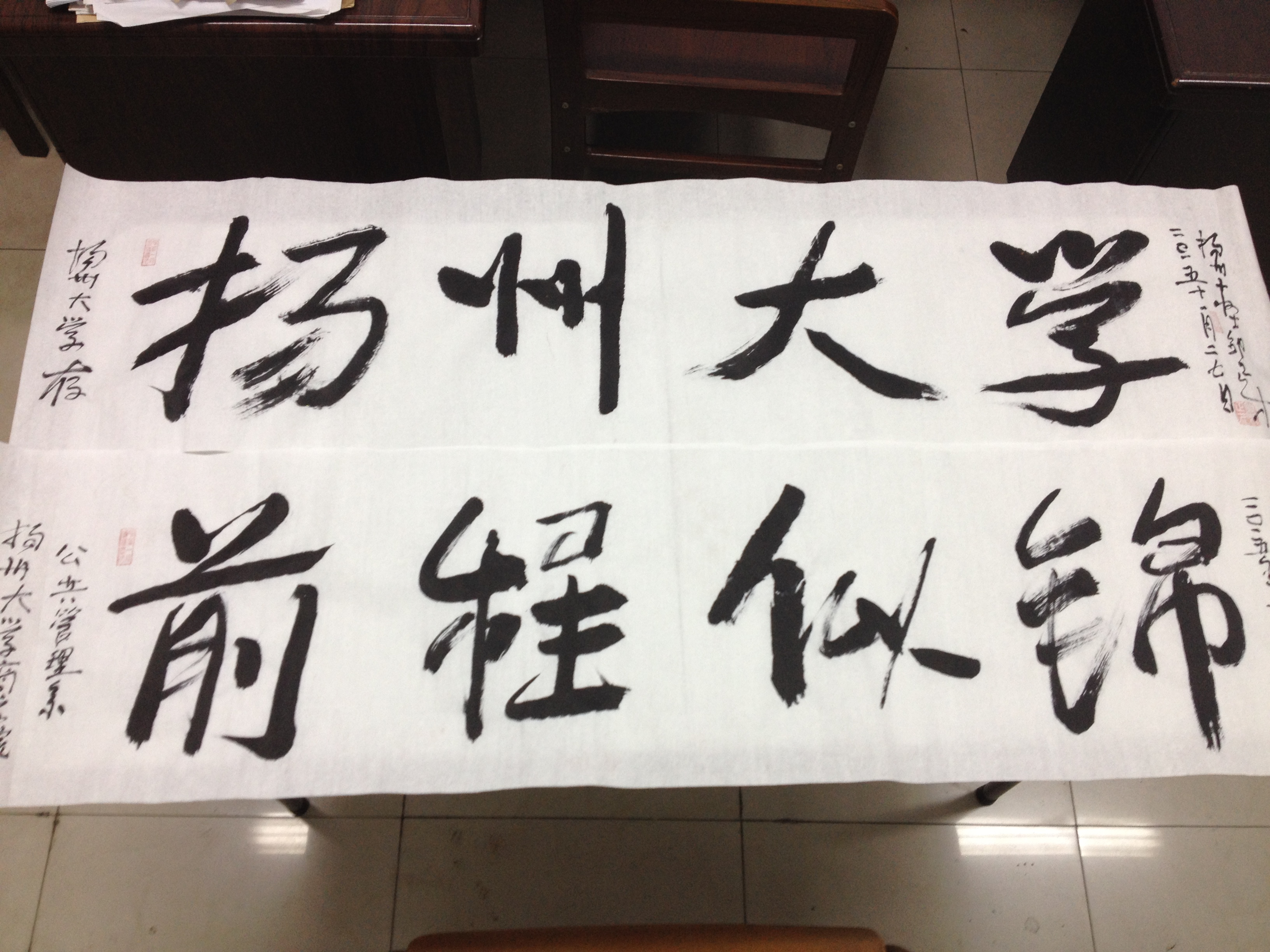 11月27日,公共管理专业师生一行48人,前往冯庄社区春晖苑进行参观实习。邗上街道厉科长与社区厉主任热情接待并引领师生参观了春晖苑。春晖苑虽然是一个以拆迁安置为主的小区,但在社区建设中却有着自己的特点。小区以孝文化作为改善邻里关系的基点,弘扬传统文化,打造时代精神。在便民服务中心师生更是感觉到了作为一个基层社区工作者的辛劳与奉献。参观过程中有扬州第十怪的邹正才即兴表演了反体书法,表达了民间艺人对师生参观的欢迎与祝愿。