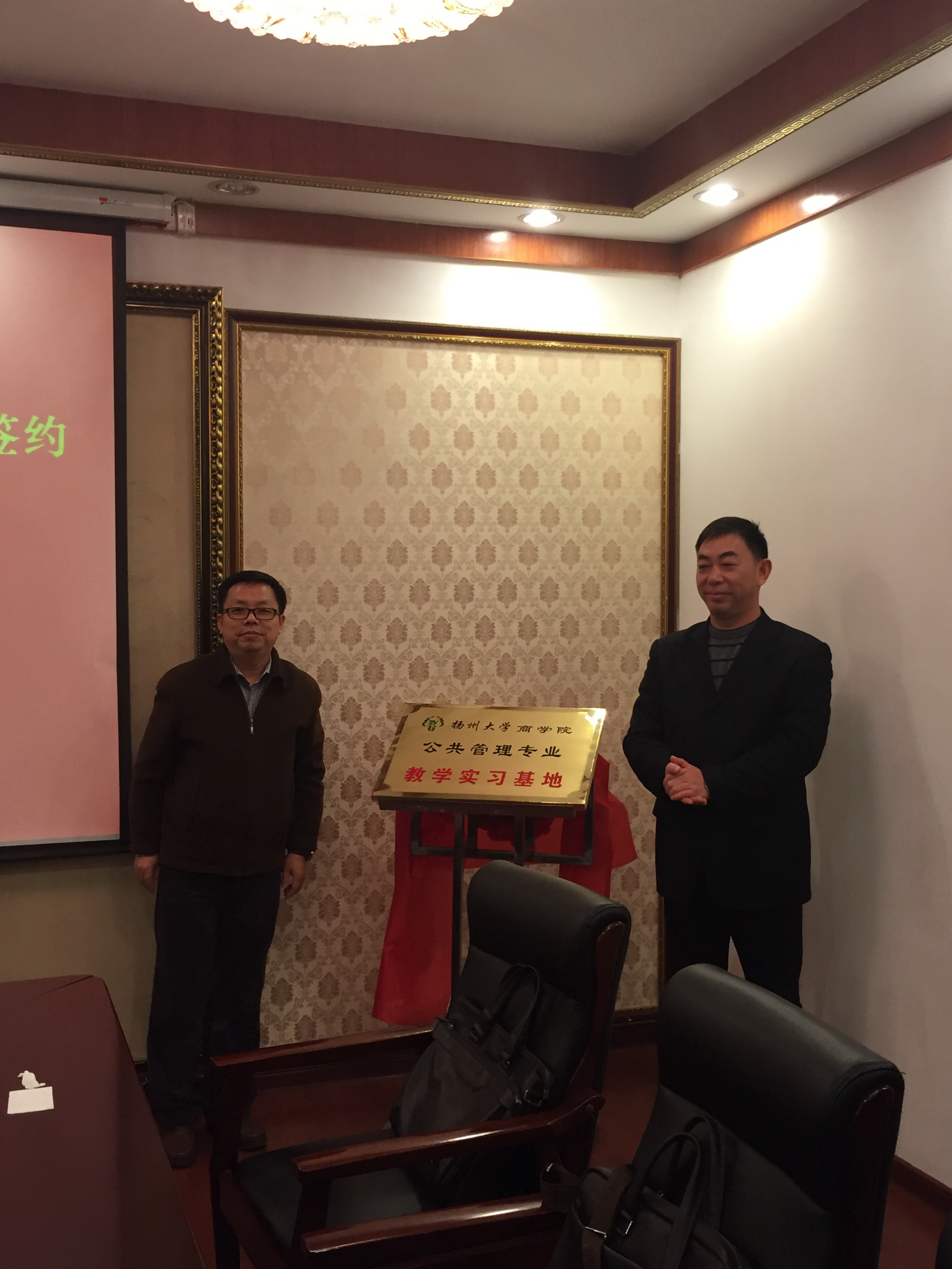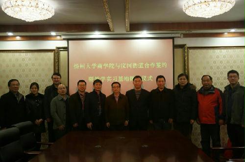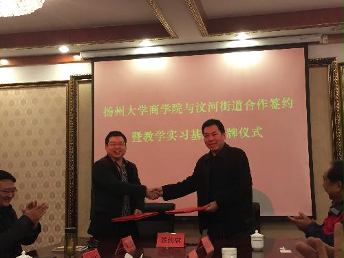 12月2日下午,虽然寒风刺骨,但在扬州市广陵区汶河街道办事处的会议室里洋溢浓浓的喜庆气氛。扬州大学商学院与广陵区汶河街道合作签约暨教学实习基地揭牌仪式正在这里举行。仪式由汶河街道党工委书记牛耕耘主持,汶河街道主任邵海峰与商学院教学院长李庆钧分别代表各自单位在合约上签字,广陵区副区长胡明寿与商学院党委书记凌云志共同为商学院公共管理专业教学实习基地揭牌。胡区长与凌书记分别发表了简短的讲话,充分肯定了校地合作的广阔前景和现实意义,认为校地合作将实现多赢的结局。双方都表达了以此次合作为契机进行更为广泛的合作,共同为地方建设和学校发展作出应有的贡献。