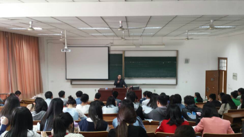 2016年4月13日下午,海通证券扬州营业部总经理刘杰先生亲临扬州大学课堂,为财政金融系大三的同学们作了一场精彩的证券知识和大学生就业指导的讲座。讲座由财政金融教研室教学主任魏清老师主持,海通证券营业部领导和我院部分老师参加了讲座。