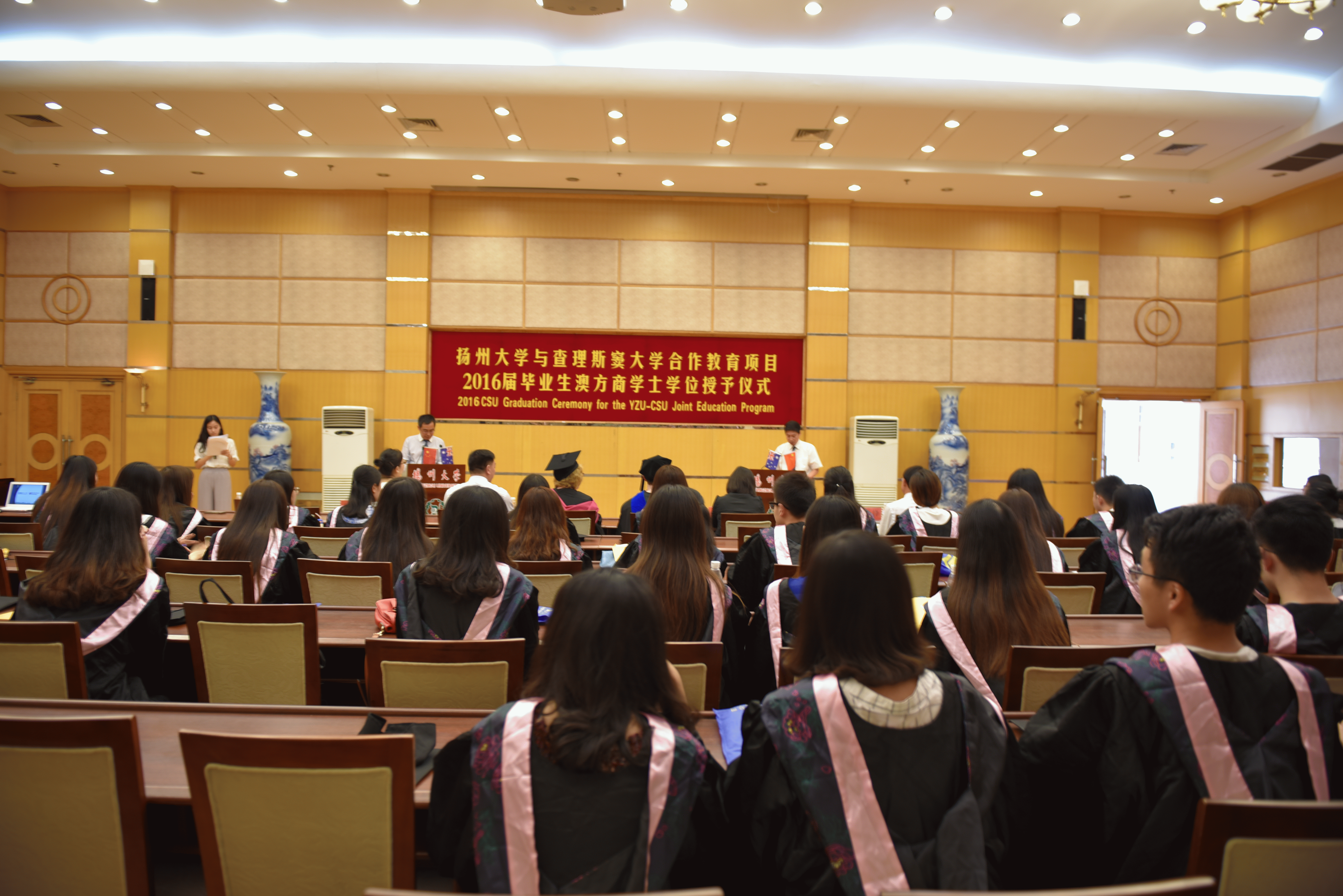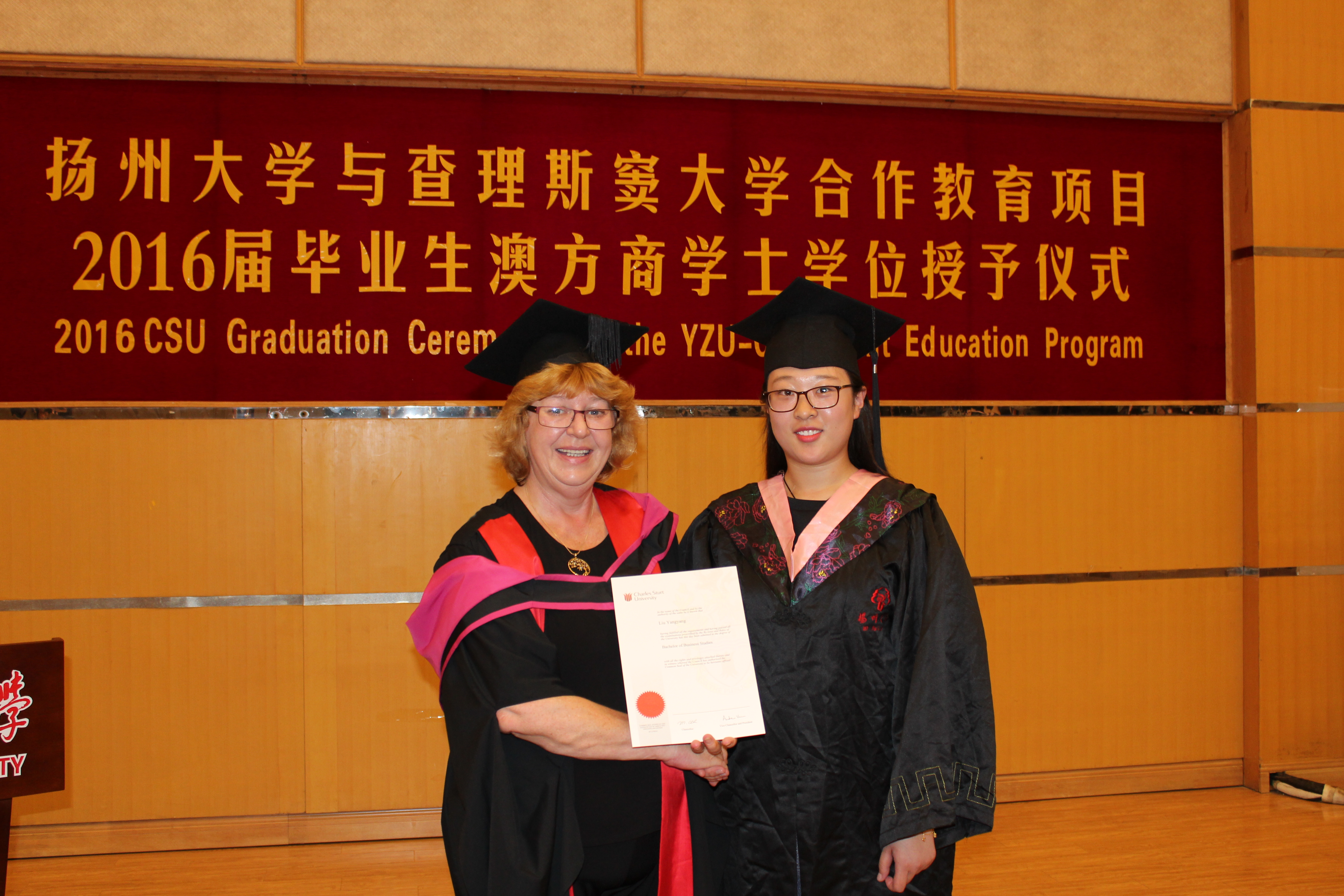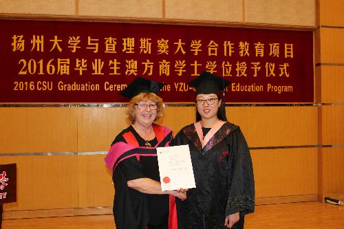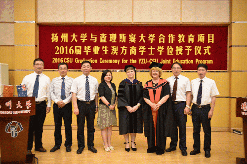 2016年6月20日上午,我院2016届国际商务专业澳方学位授予仪式隆重举行。澳大利亚查理斯窦大学副校长Mary Kelly教授、副校长Heather Cavanagh教授。商学院和教务处、海外教育学院领导,中澳合作办学项目管理人员出席了学位授予仪式。众多学生家长也专程来到典礼现场,见证学位授予的激动时刻,并向毕业生表示热烈的祝贺。