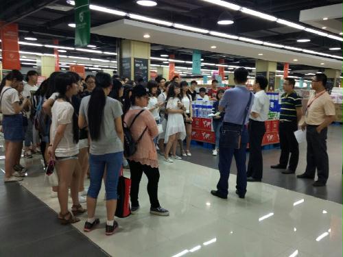 同学们首先来到东方食品城内东方国际商业广场5号,参观了汇银乐虎全球购体验基地商贸物流园店内,汇银集团电子商务公司郭广忠总经理对汇银转型发展和跨境电商业务开展情况向同学们做了详细的介绍。同学们围绕着汇银转型战略、跨境电商业务的商业模式、全球购业务流程、品类经营、质量管理、市场推广等问题进行了充分地互动交流。然后,同学们走进广陵食品工业园,参观了青岛啤酒(扬州)有限公司与扬州三和四美酱菜有限公司,通过企业管理人员的讲解,同学们对快消品啤酒与酱菜的生产经营及市场营销等情况有了更深的感性认识。