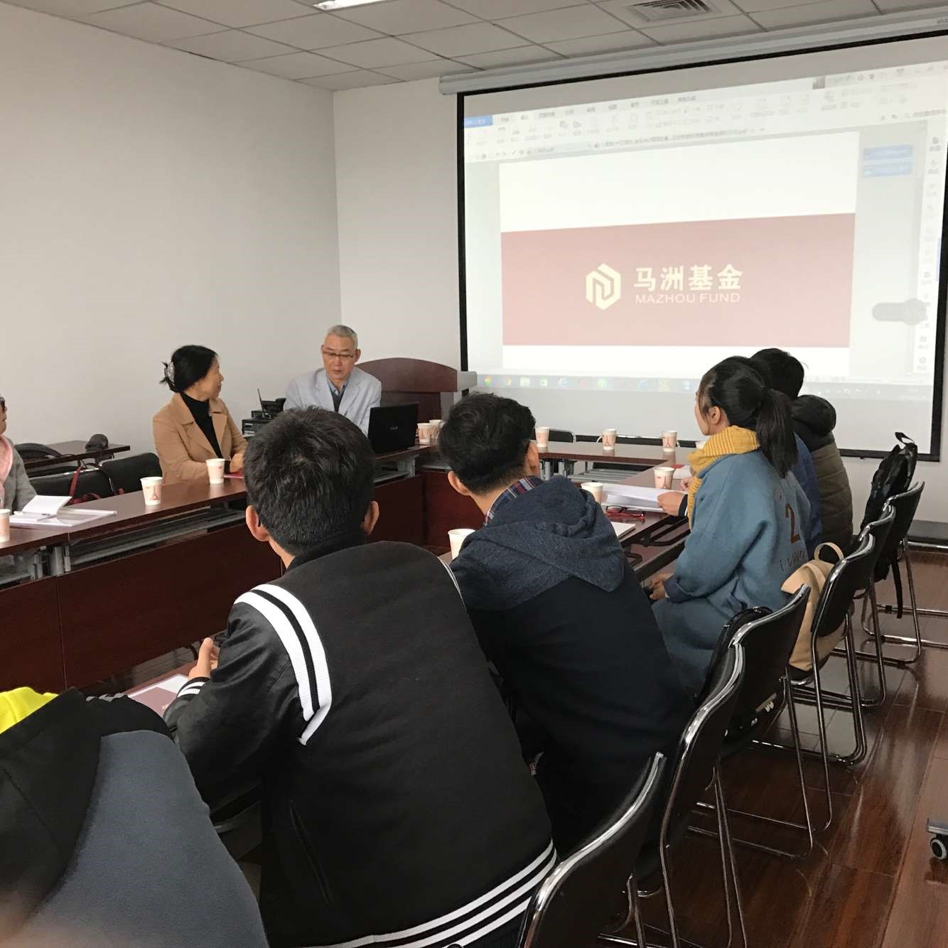 张亚维教授交流了此行的主要目的,她认为高校大学生普遍存在的一个问题就是缺乏实战经历,不接地气,理论知识严重与实践分离,提醒同学们在学习理论知识之余,还应该多多接触金融现实,学以致用才是学习的最终目的。最后大家通过面对面建群建成一个师生及马洲基金的微信交流群,拓宽了学习渠道。