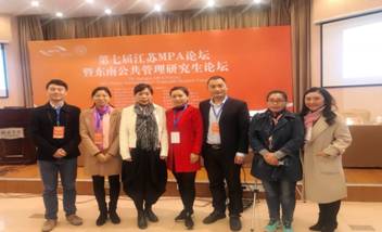 2017年11月4日,第七届江苏MPA论坛暨东南公共管理研究生论坛在东南大学榴园宾馆举行。来自江苏以及长三角地区的20所MPA培养院校的师生代表、江苏MPA联谊会代表近200人相聚一堂,共同探讨公共管理领域的热点话题。刘伟忠副院长、公共管理系张宇教授、MPA中心韩宏华老师以及 MPA研究生苏正国、王子亚、顾海军、季薇、杨小蓓、周萍等参加了此次论坛。
