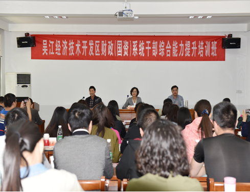 吴江经济技术开发区财政局委托我院举办的二期开发区财政(国资)系统干部综合能力提升培训班,分别于2018年4月17日和4月24日正式开班。开班典礼上我院徐金海副院长代表学院致欢迎词,吴江经济技术开发区财政局蒋海燕副局长和韩雪峰副局长分别为两期培训班作开班动员并提培训纪律要求。该班培训内容为:当前我国经济形势及发展走向分析,国学智慧与思维创新,法治财政,新一轮财税体制改革审视等。