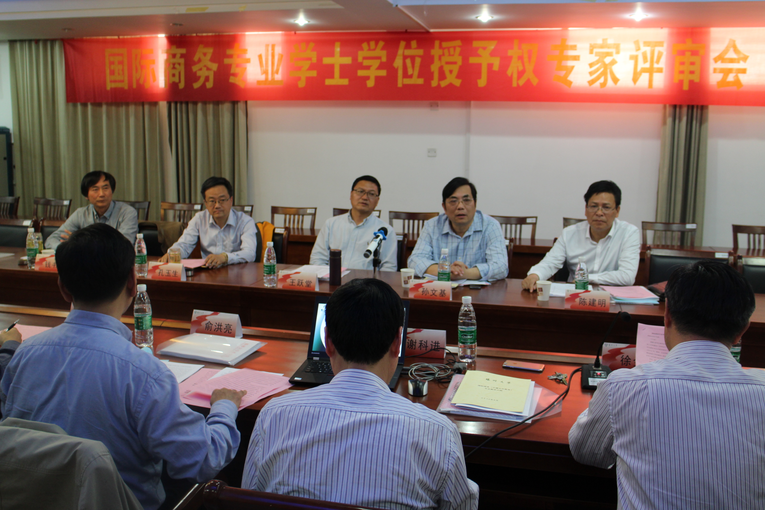 根据《省学位委员会省教育厅关于调整学士学位授权专业增列审核工作的通知》(苏学位字﹝2015﹞6号)和《关于开展2018年学士学位授权单位申报和授权专业增列审核工作的通知》(苏学位办[2018]6号),2018年4月27日,学院开展2018年新增学士学位授予专业评审工作。该项工作主要是对我院2014年开设的国际商务专业的学士学位授权申请工作进行评审。本次评审专家组由南京大学王跃堂教授、苏州大学孙文基教授、江苏大学孔玉生教授、南京财经大学钱书法教授,徐州工程学院陈建明教授等5位专家共同组成,其中,南京大学管理学院院长王跃堂教授任评审组组长。