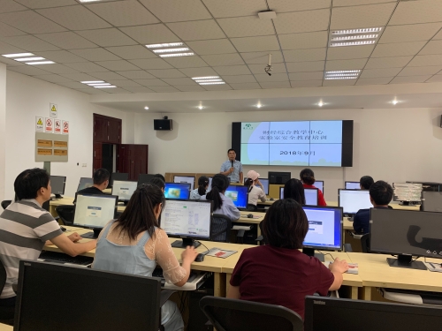 9月10日,为增强青年老师和学生安全责任意识和自我保护能力,营造良好的安全文化氛围,商学院组织各班级班长、团支书及学生代表在109金融实验室开展实验室安全教育培训活动。本次培训由实验中心主任姚瑞马主讲。