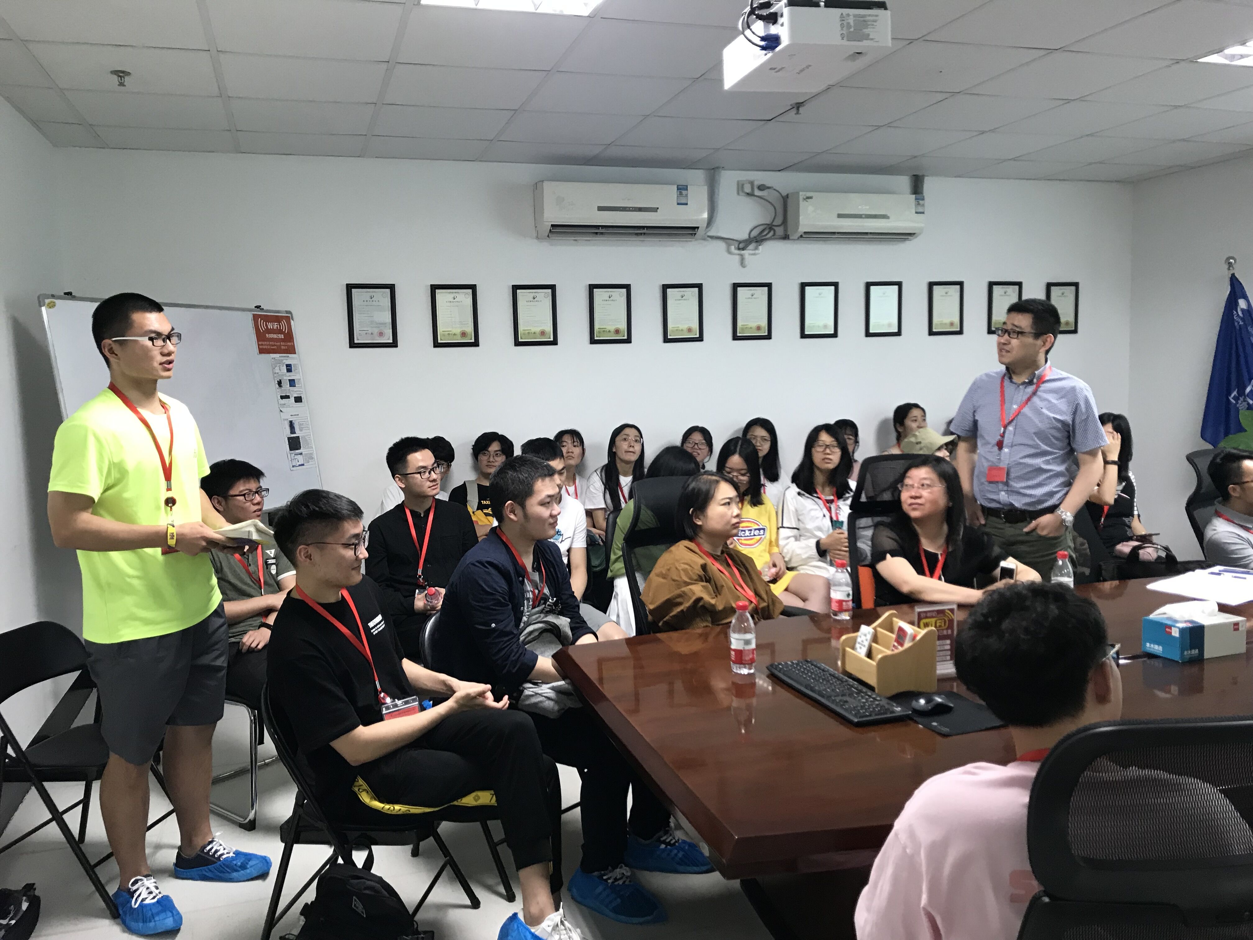 邓总详细介绍了上扬无线企业的发展概况、重点介绍了公司的物流RFID产品及行业发展现状,为师生现场演示了公司新成果——具有高灵敏度、适合多种介质环境的无人零售的物流RFID标签。并就物流科技、RFID标签及应用场景案例、物联网应用等进行交流互动。最后和师生们就物流与供应链发展、物联网的相关应用技术等展开了热烈互动,同学们加深了对物流条码、RFID射频标签等在企业运营管理活动中应用理解,也对未来智能运营、新零售场景等有了更深入地思考。最后,公司副总经理杜总亲自带领师生参观了生产线及产品样品等,让学生对物流信息化的相关产品有了直观的认知。