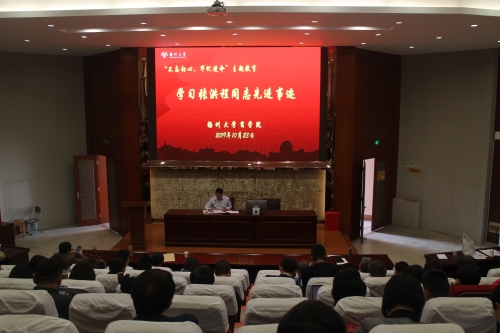 在领学张洪程同志先进事迹后,院党委书记孟益宏要求全院教职工要以张洪程同志为榜样,学习他心系国运、至诚报国的爱国情怀,学习他教书育人、率先垂范的敬业精神,学习他坚苦自立、无私奉献的优秀品格,学习他敢为人先、争创一流的责任担当。守立德树人初心,担高水平发展使命,为建设高水平商学院而努力。