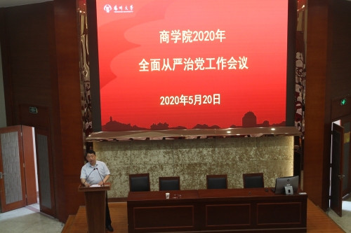 5月20日下午,学院召开全面从严治党工作会议。会议学习了十九届中央纪委四次全会、十三届江苏省纪委五次全会精神,传达学习了校党委书记姚冠新在学校全面从严治党工作会议上的讲话精神,校纪委书记、监察专员周琴工作报告的主要内容。部署学院全面从严治党、师德师风建设、意识形态、安全稳定等工作。