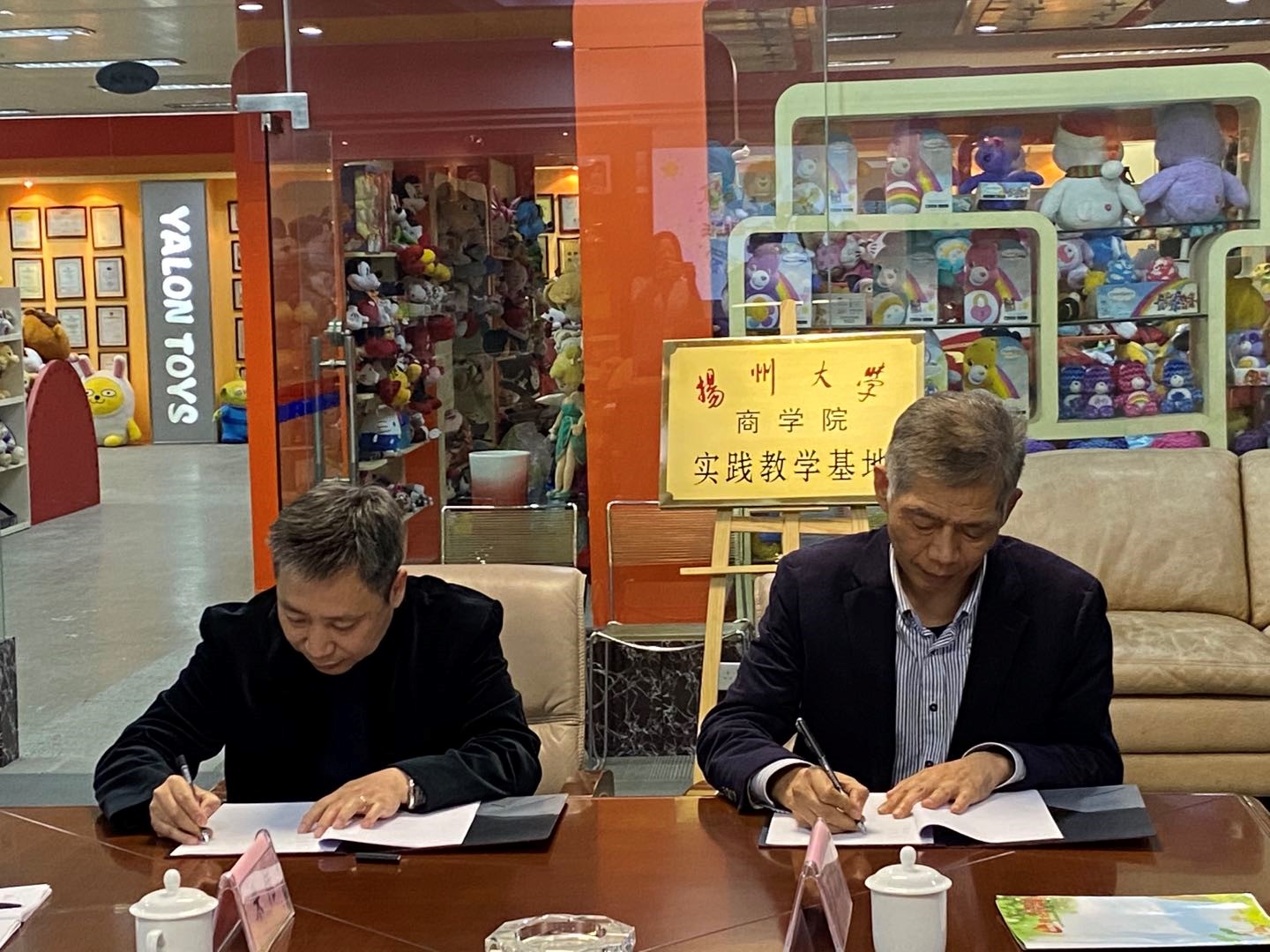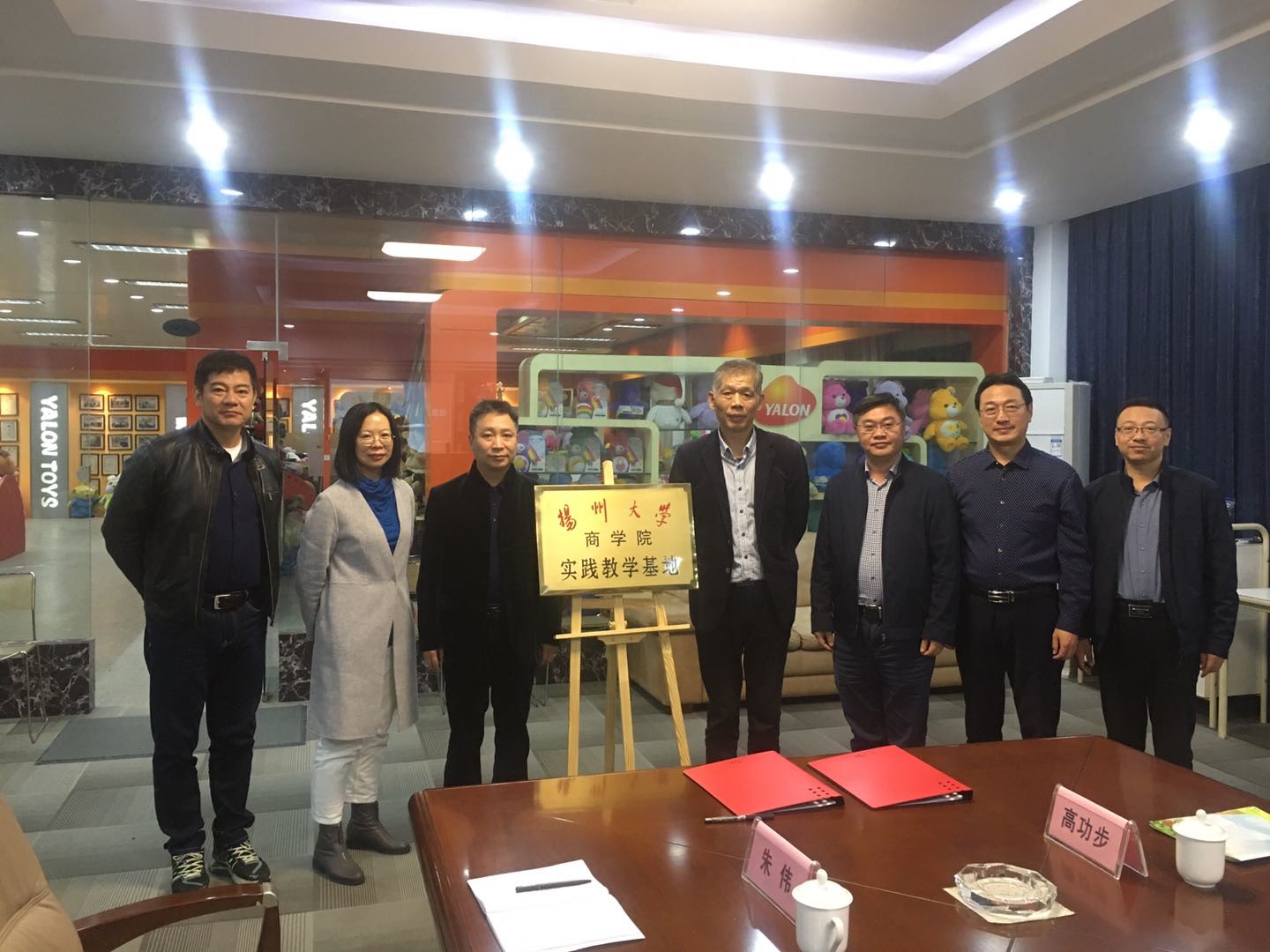 学生教学实习结束后,商学院秦兴方院长和雅伦玩具有限公司林若庸董事长分别代表学院和雅伦玩具有限公司举行了经济学(智慧管理)系本科实践教学基地的签约授牌仪式,商学院徐金海副院长、经济学(智慧管理)系高功步主任、经济学(智慧管理)系陈杰副主任一同参加了签约授牌仪式。