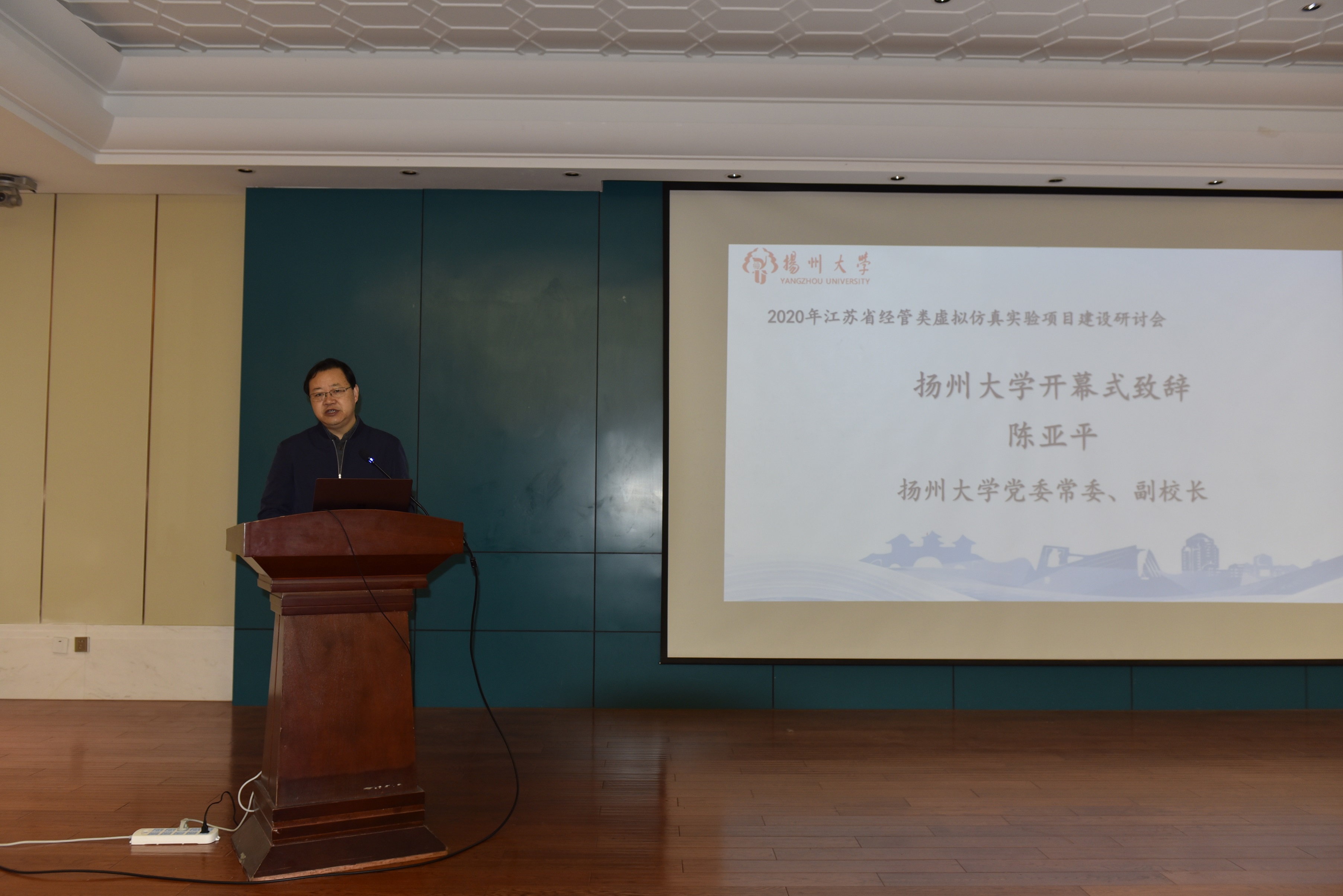 11月14日,由江苏省高等学校实验教学与实践教育中心联席会财经学科组主办,我院承办的2020年度江苏省经管类虚拟仿真实验项目建设研讨会在扬州举行。校党委常委、副校长陈亚平出席会议并致辞,扬州大学商学院院长秦兴方代表承办方出席会议并致辞。