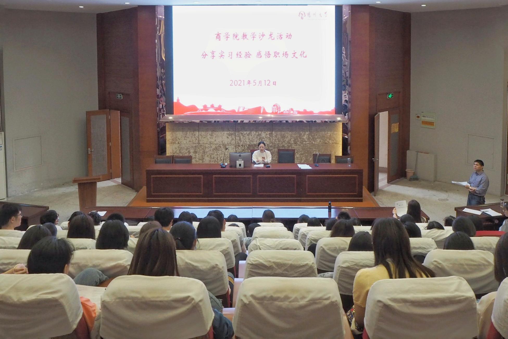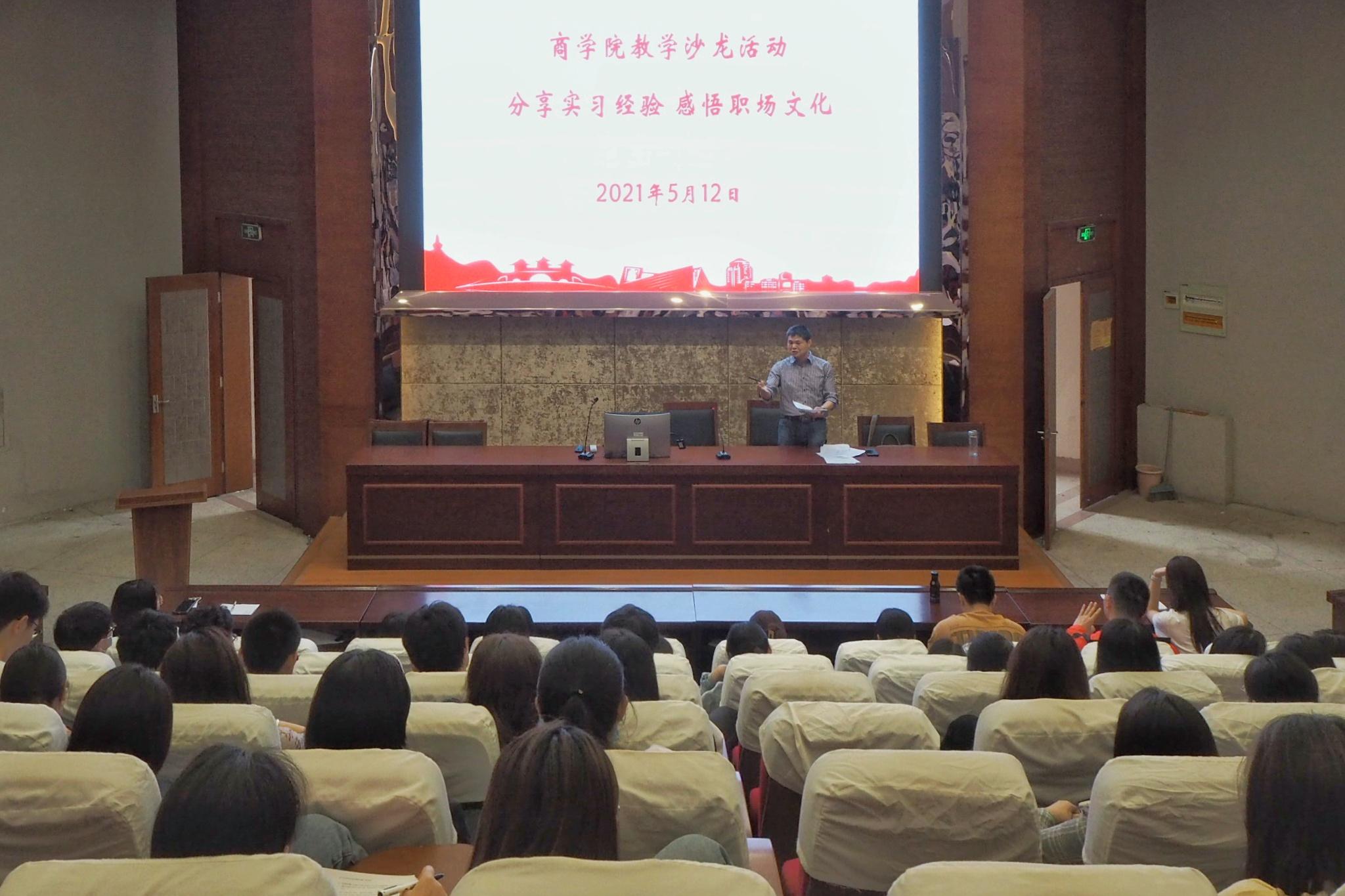 2021年5月12日上午,商学院举办了“分享实习经验 感悟职场文化”的教学沙龙,教学沙龙由财会系袁凤林教学主任主持,财会系无课老师及财会系全部毕业生参加了本次活动。