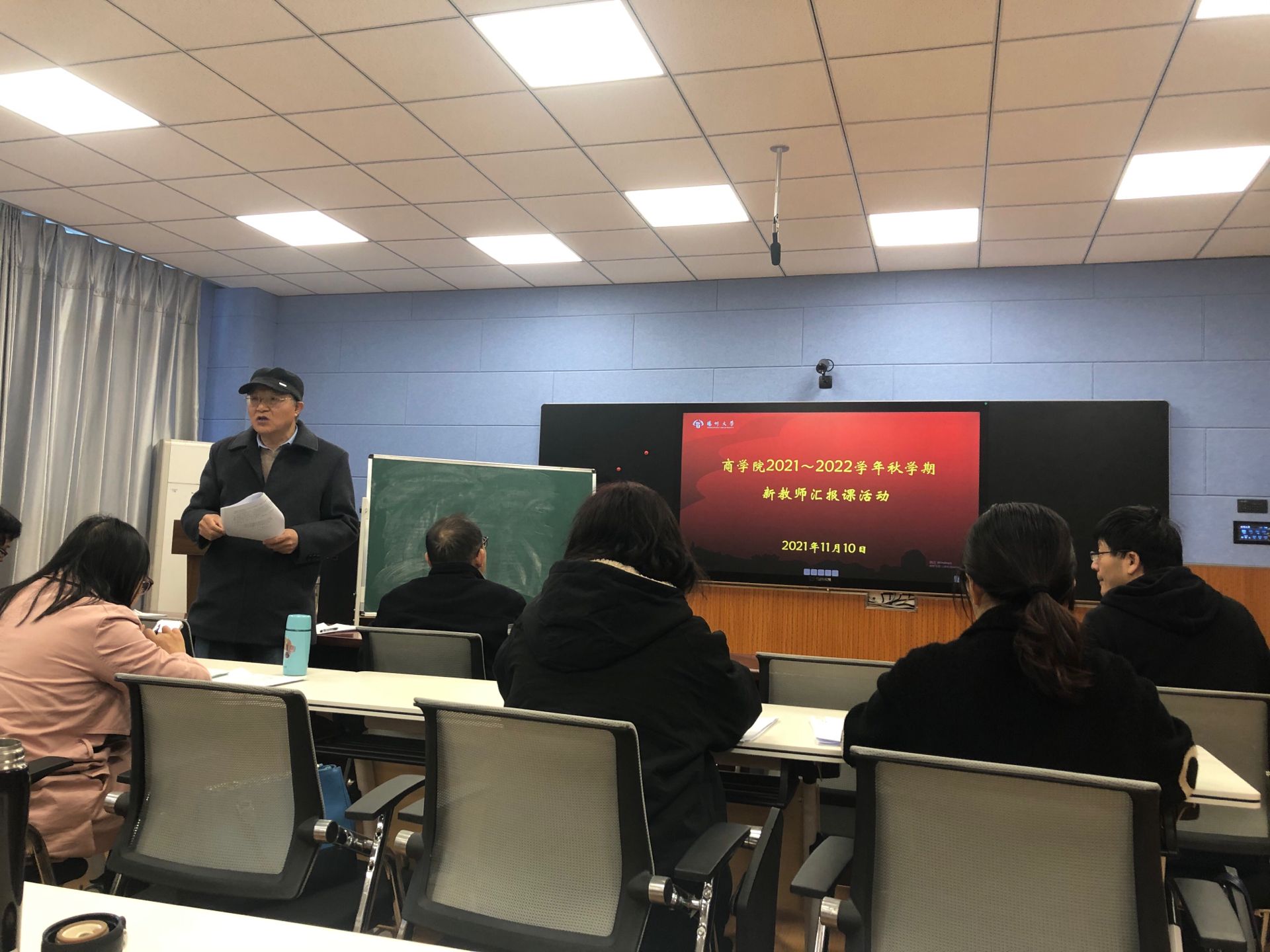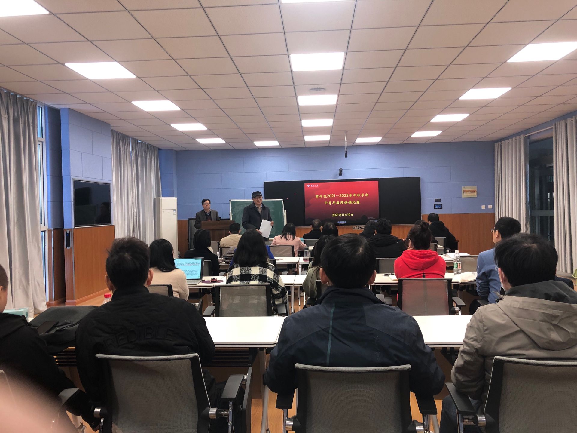 2021年11月10日下午,商学院在扬子津校区MPA、MBA中心智慧教室举办了中青年教师讲课比赛暨新教师汇报课活动。副院长李志斌出席活动并致辞。全体本科教学督导、各系科(中心)教学主任,近三年新进青年教师也参加了本次活动。