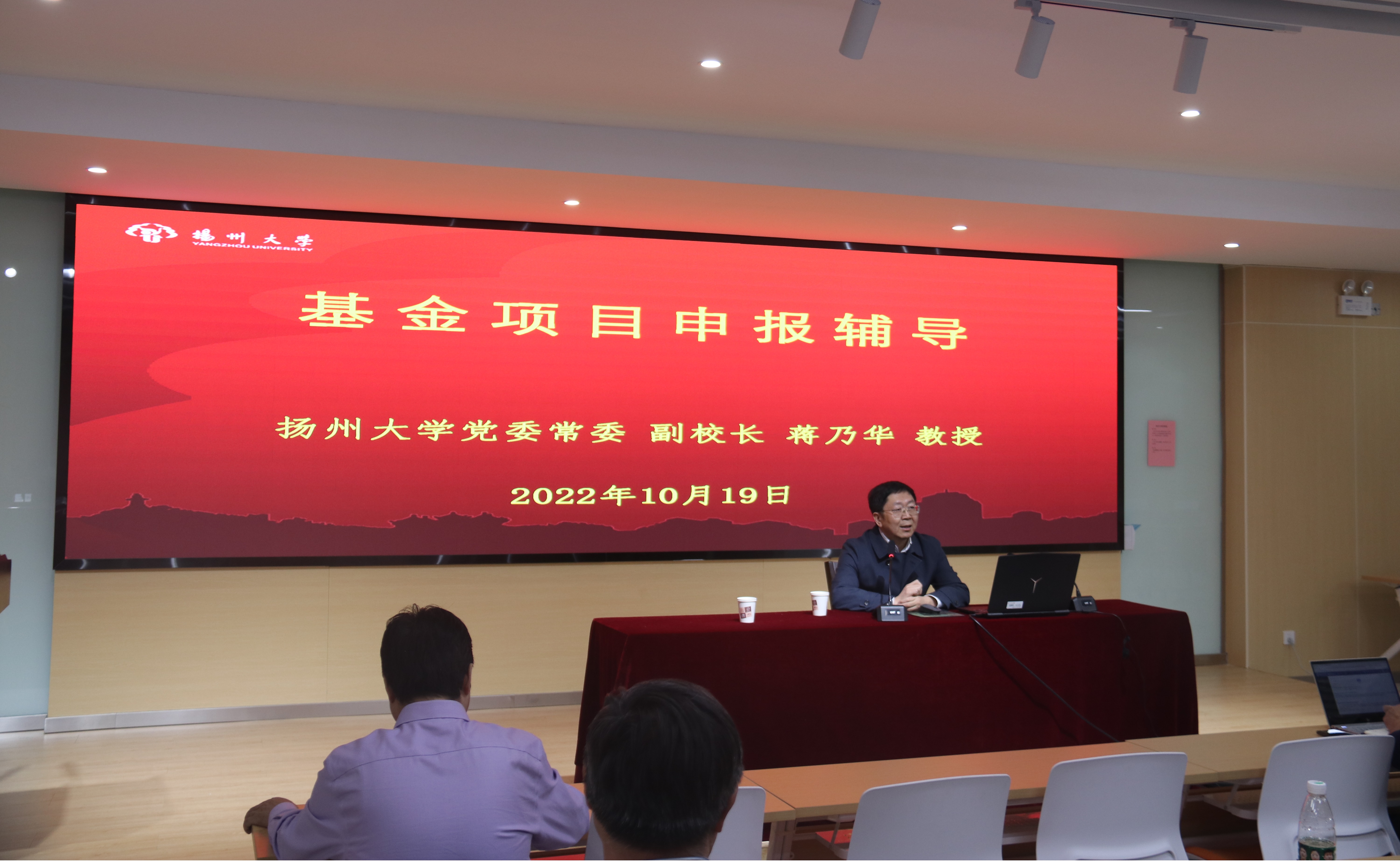2022年10月19日,扬州大学党委常委、副校长蒋乃华教授应邀为我院教师做基金项目申报辅导,李志斌院长主持辅导会。